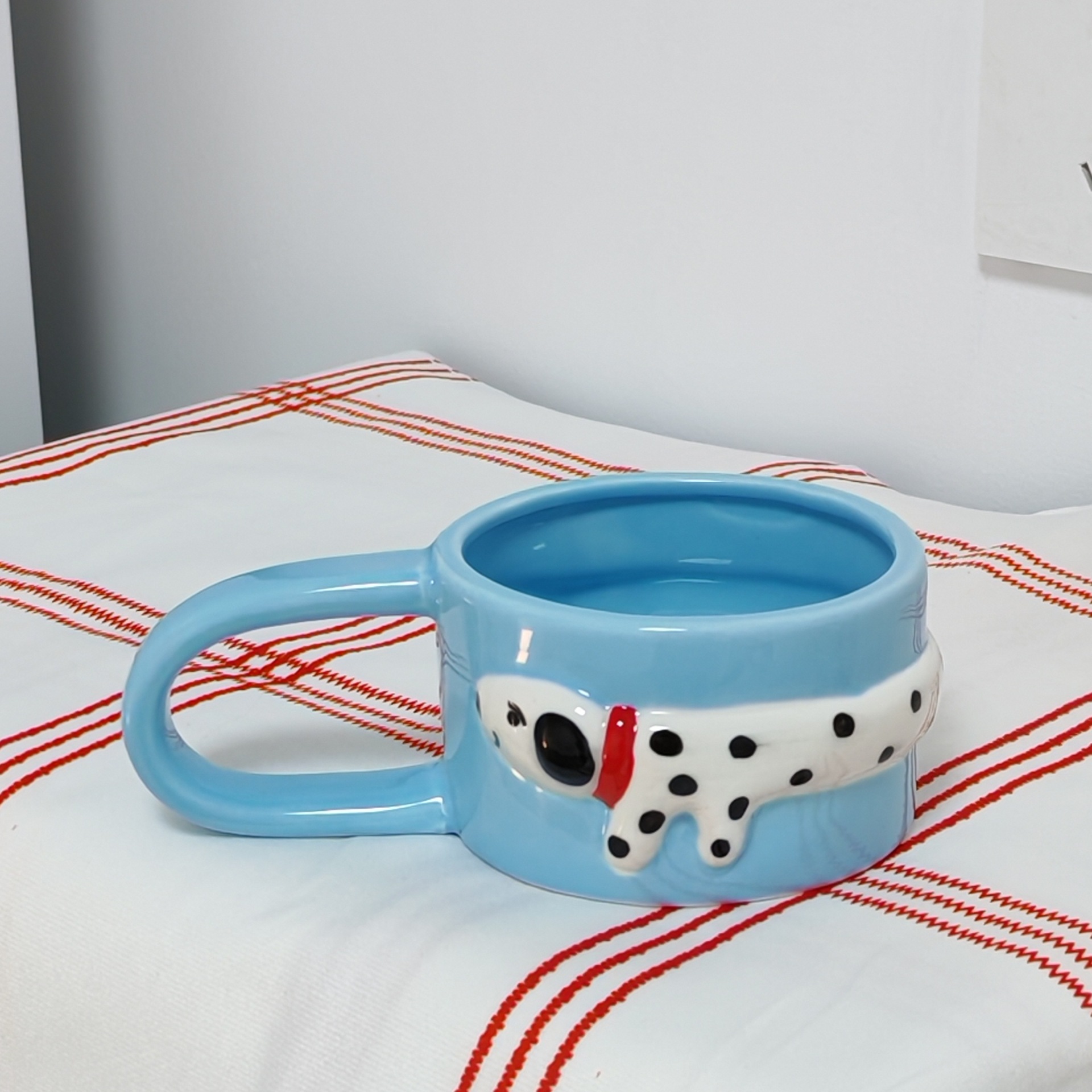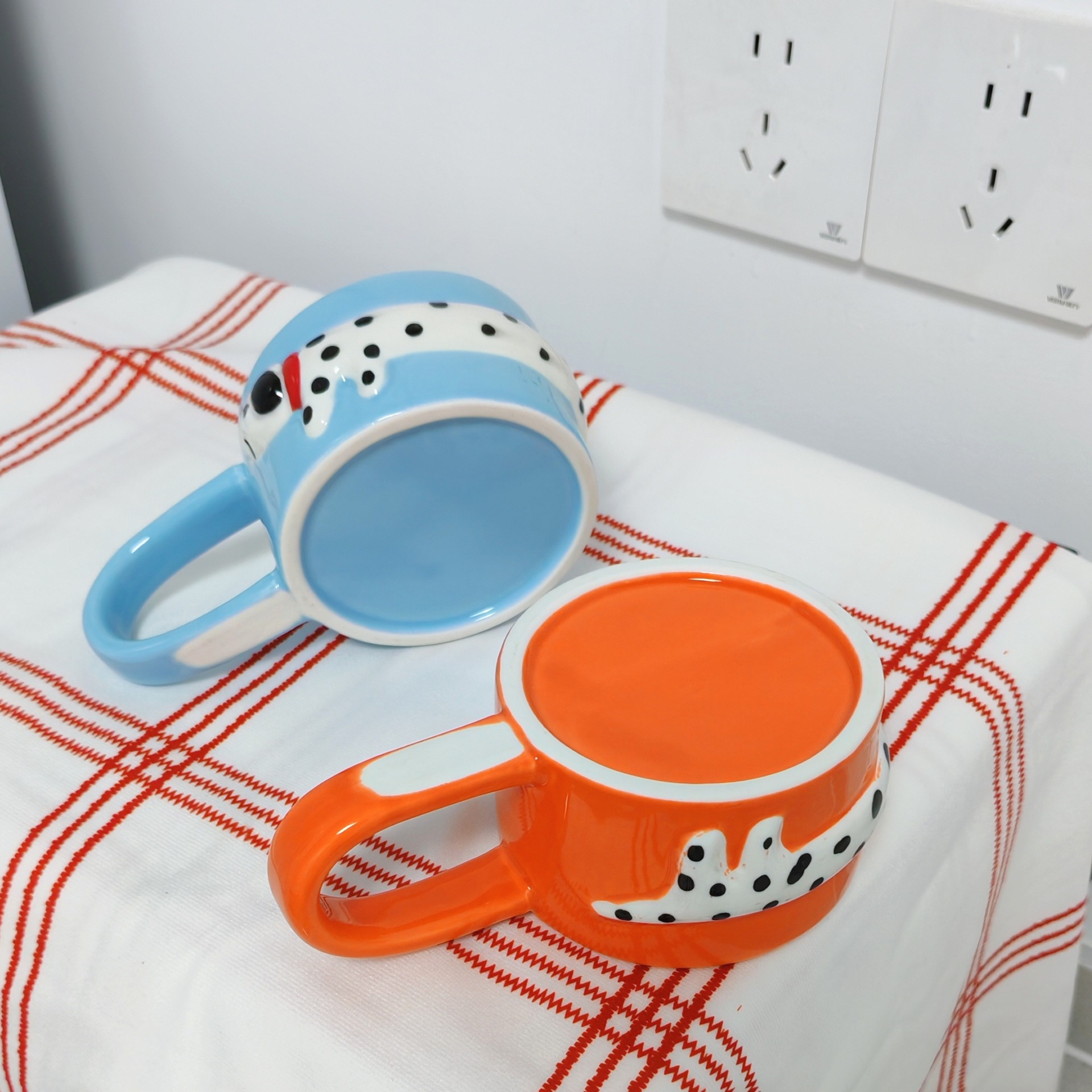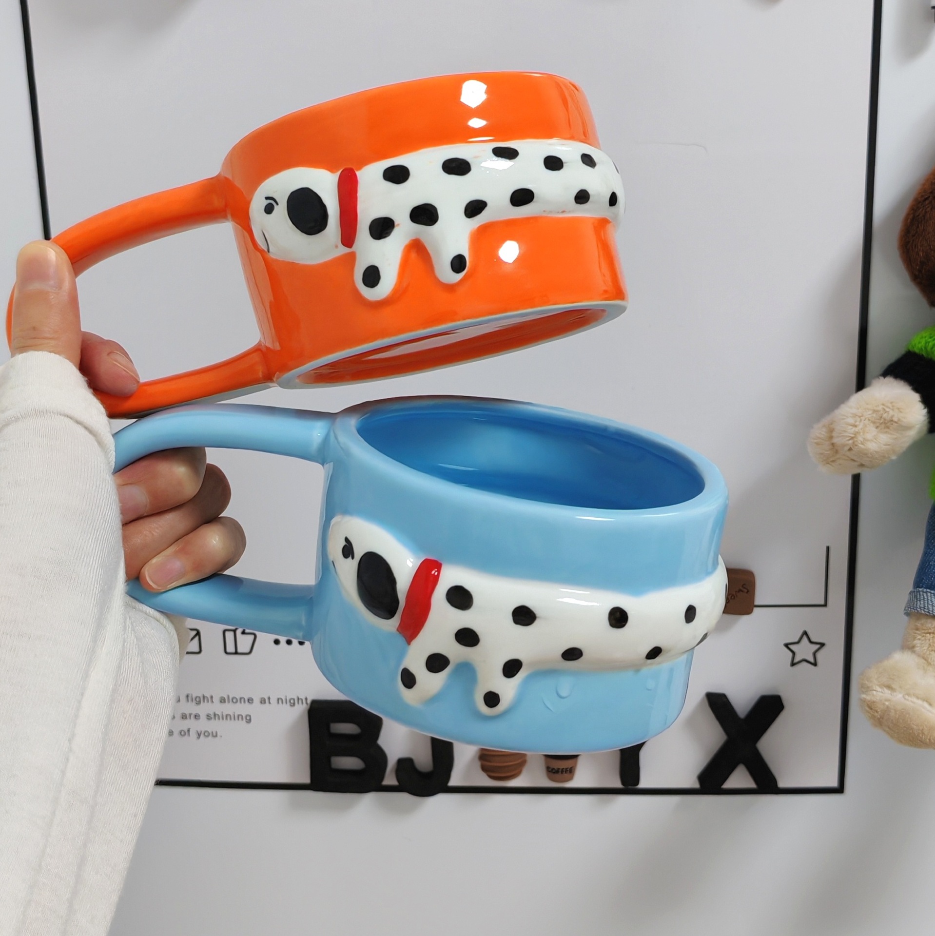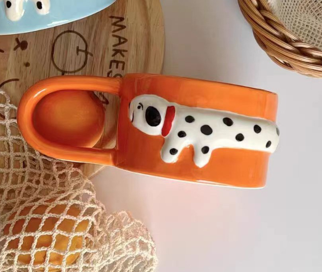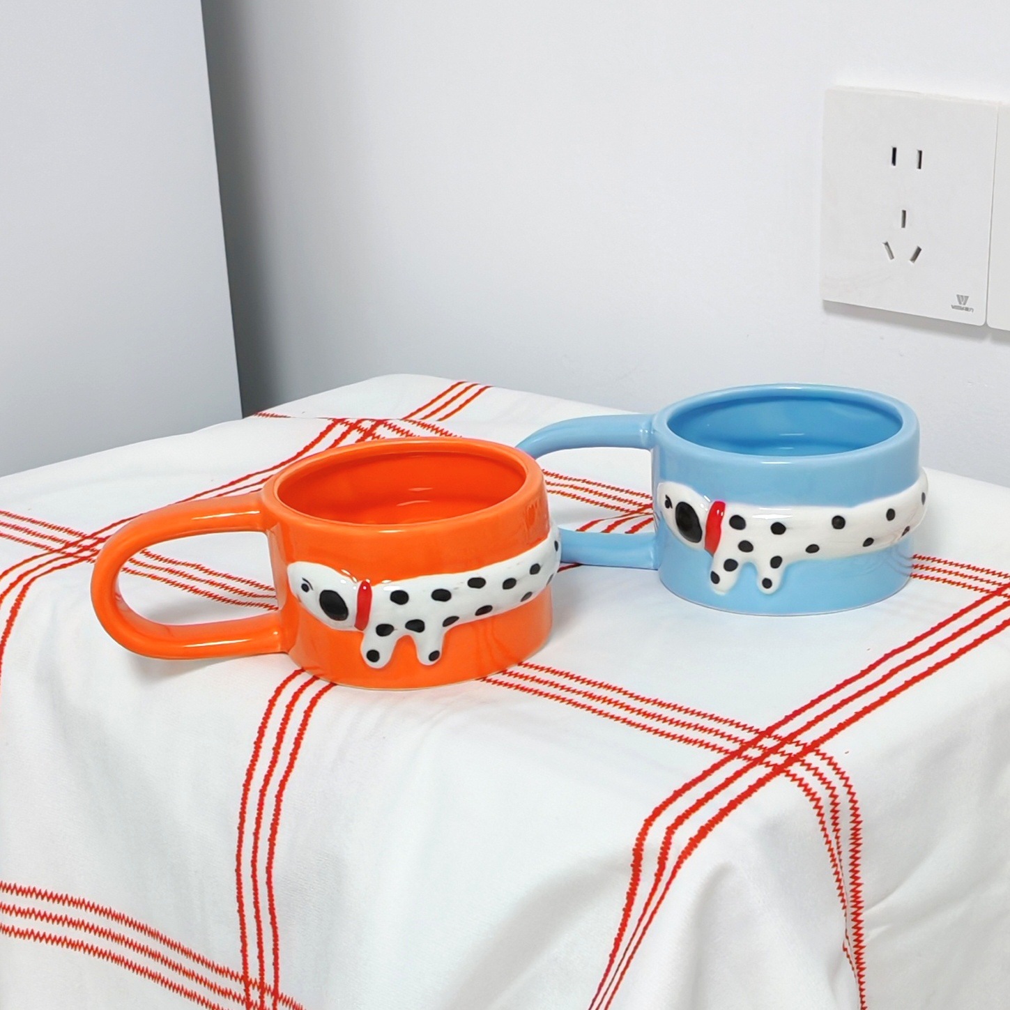 Product information: Pattern: Cartoon Color: orange sausage dog ceramic cup, blue sausage dog ceramic cup Material: Ceramic Structure: Single layer Shape: round Microwave oven: Available Style: Cartoon Capacity: about 300ml