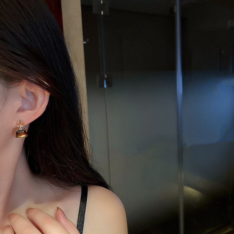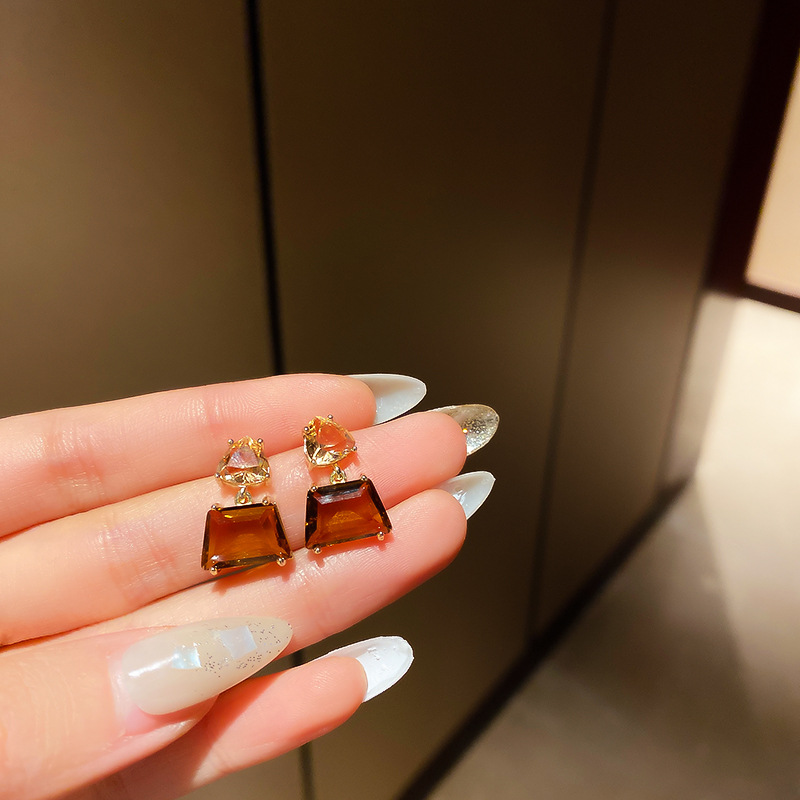 Material: AlloyStyle: Korean style/Korean styleModeling: GeometryTreatment process: ElectroplatingPackaging: Individually packedInlay material: Not inlayColor: Silver Needle-Light Brown