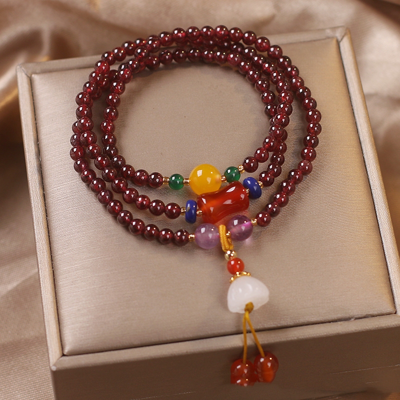 Product information:Color: wine redStyle: Women'sMaterial: GarnetShape: FlowerPopular elements: ethnic, retro, national fashionStyle: ethnic style