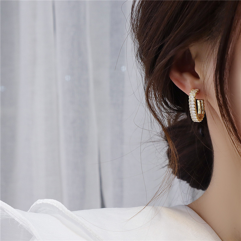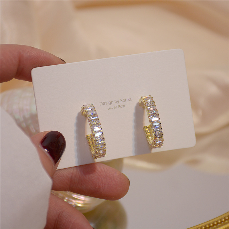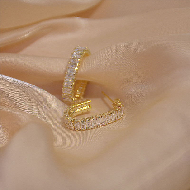 Micro-inlaid Zircon Exquisite Design Sense Net Red Temperament Earrings Square Earrings
