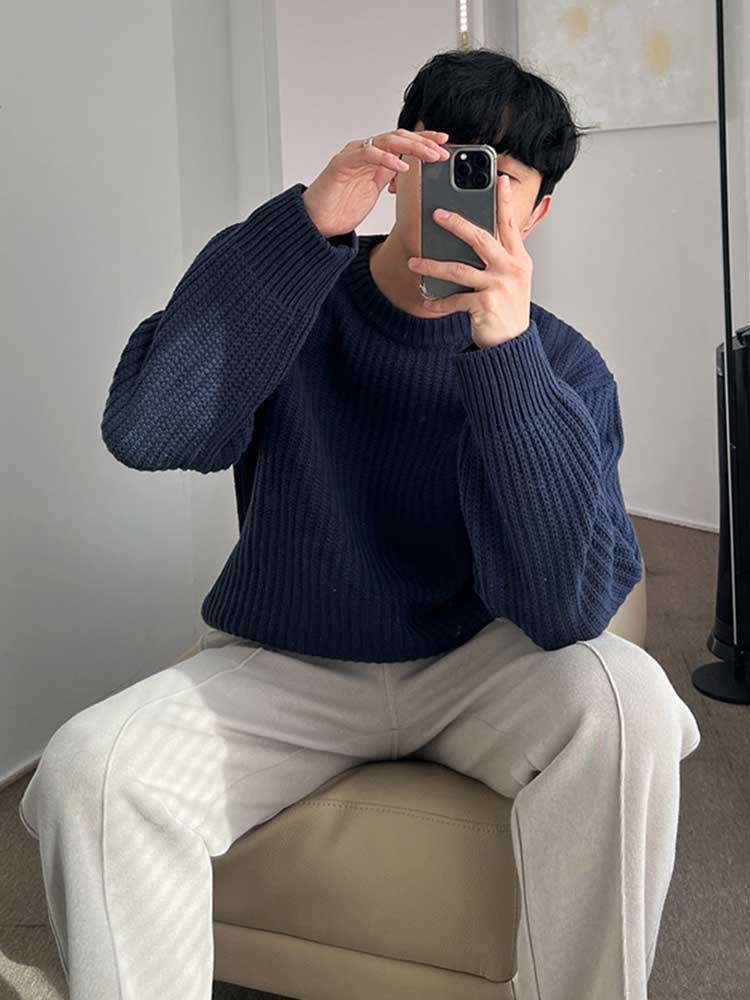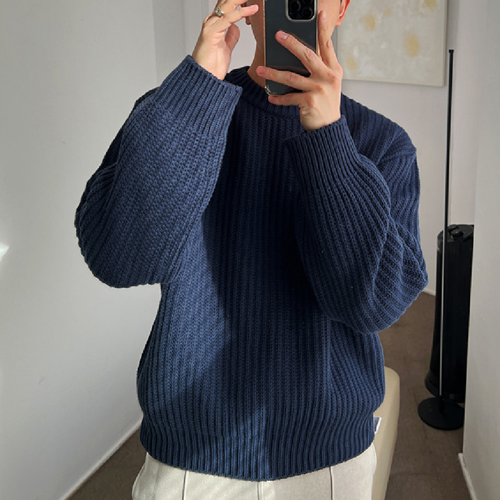 Round neck pullover sweater*1