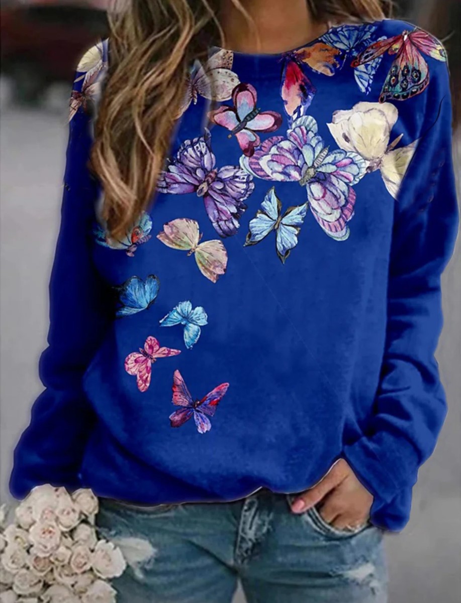 Color: white and blue feathers, gray and green dots, khaki flowers, black and gray letters, blue sky seagulls, blue butterflies, light blue, white flowers