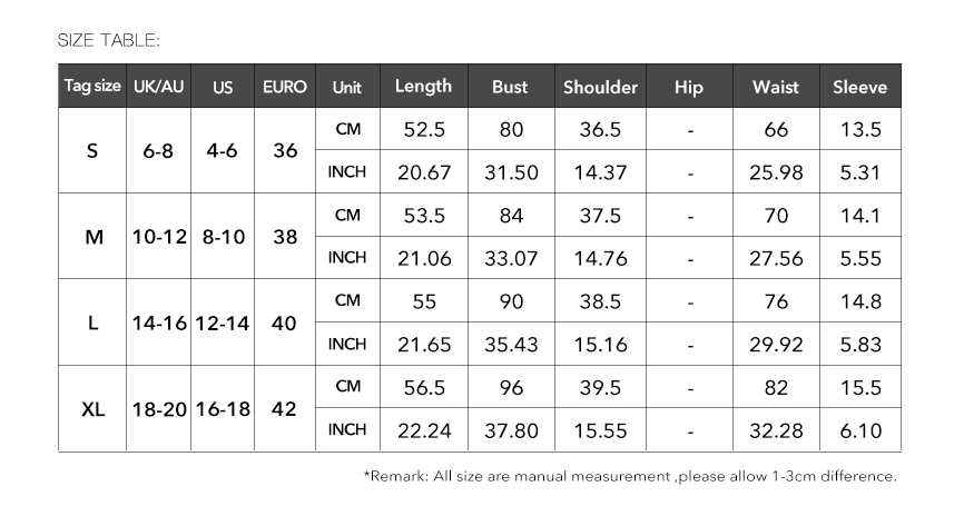 1. Asian sizes are 1 to 2 sizes smaller than European and American people. Choose the larger size if your size between two sizes. Please allow 2-3cm differences due to manual measurement. 2. Please check the size chart carefully before you buy the item, if you don't know how to choose size, please contact our customer service. 3.As you know, the different computers display colors differently, the color of the actual item may vary slightly from the following images.
