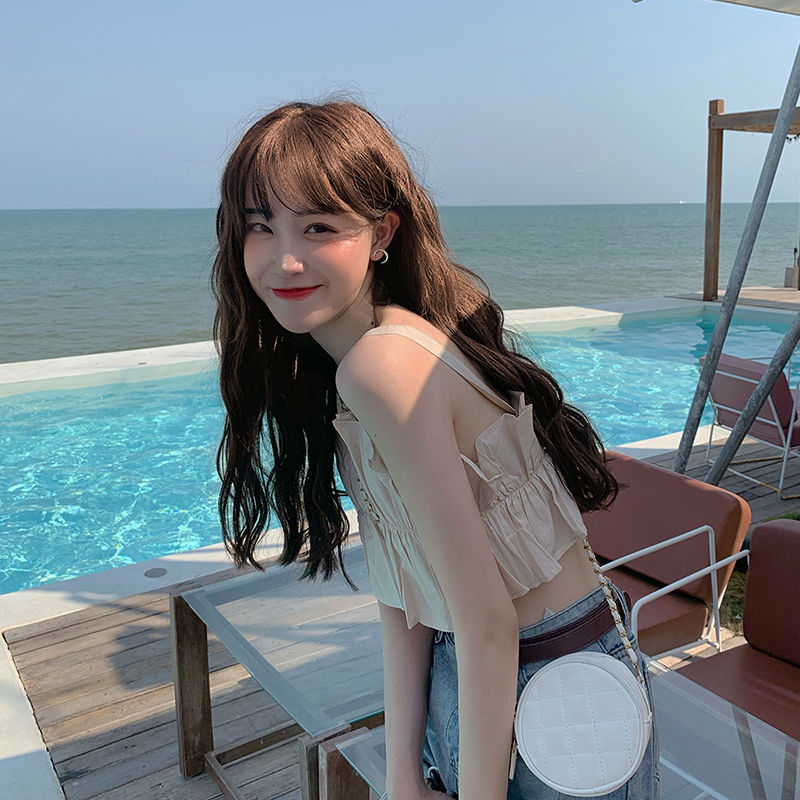 Product category: Halter topStyle: Simple commuting/Korean versionPopular element: 100 wrinkleFabric name: cotton/cottonColor: apricot, black