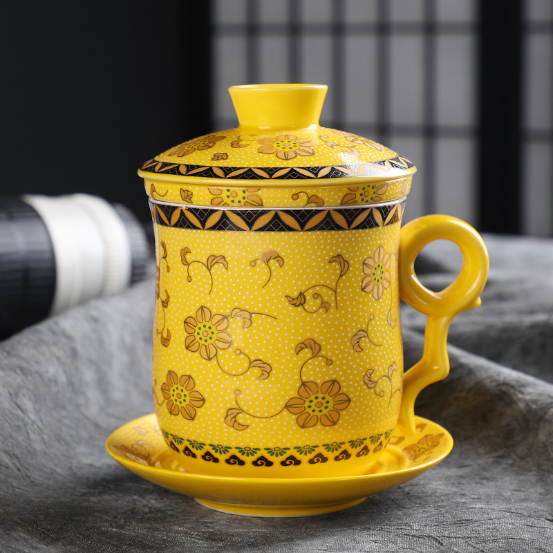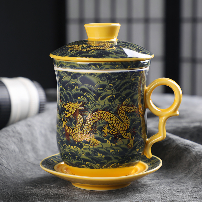 Color: ceramic four-piece set (exquisite flower), ceramic four-piece set (red Golden Dragon), ceramic four-piece set (yellow small golden cup), ceramic four-piece set (Platinum orchid Vine), ceramic four-piece set (Golden Dragon), ceramic four-piece set (Butterfly Love), ceramic four-piece set (Qingming River map), ceramic four-piece set (landscape), ceramic four-piece set (blue Golden Dragon)