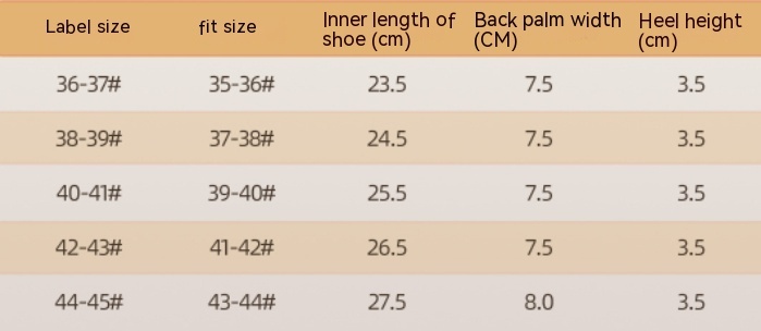 Size: 36-37 (suitable for 35-36),38-39 (suitable for 37-38),40-41 (suitable for 39-40),42-43 (suitable for 41-42),44-45 (suitable for 43-44)