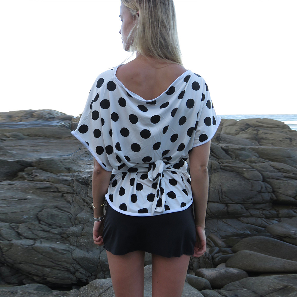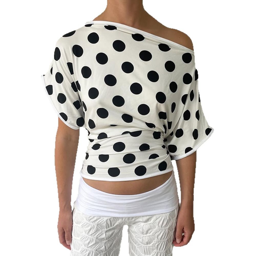 Product information: Pattern: Dots Color: White Size: S,M,L Popular elements: Dots Style: pullover Main fabric composition: Polyester (polyester fiber) Sleeve length: short sleeve Craft: Wave point