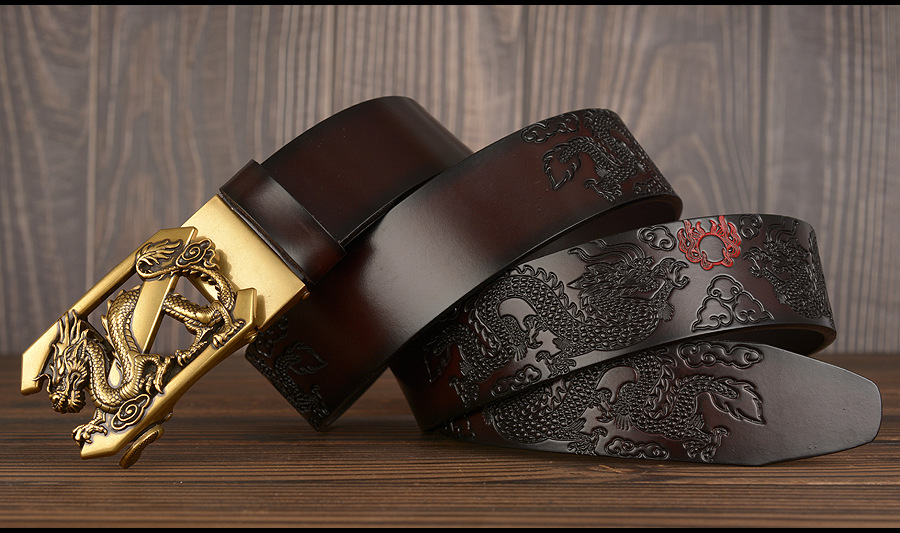Color: black double dragon pattern Z dragon gold buckle, coffee color double dragon pattern Z dragon gold buckle, earth yellow double dragon pattern Z dragon gold buckle, black double dragon pattern Z dragon silver buckle, coffee color double dragon pattern Z dragon silver buckle, earth yellow double dragon pattern Z dragon silver buckle