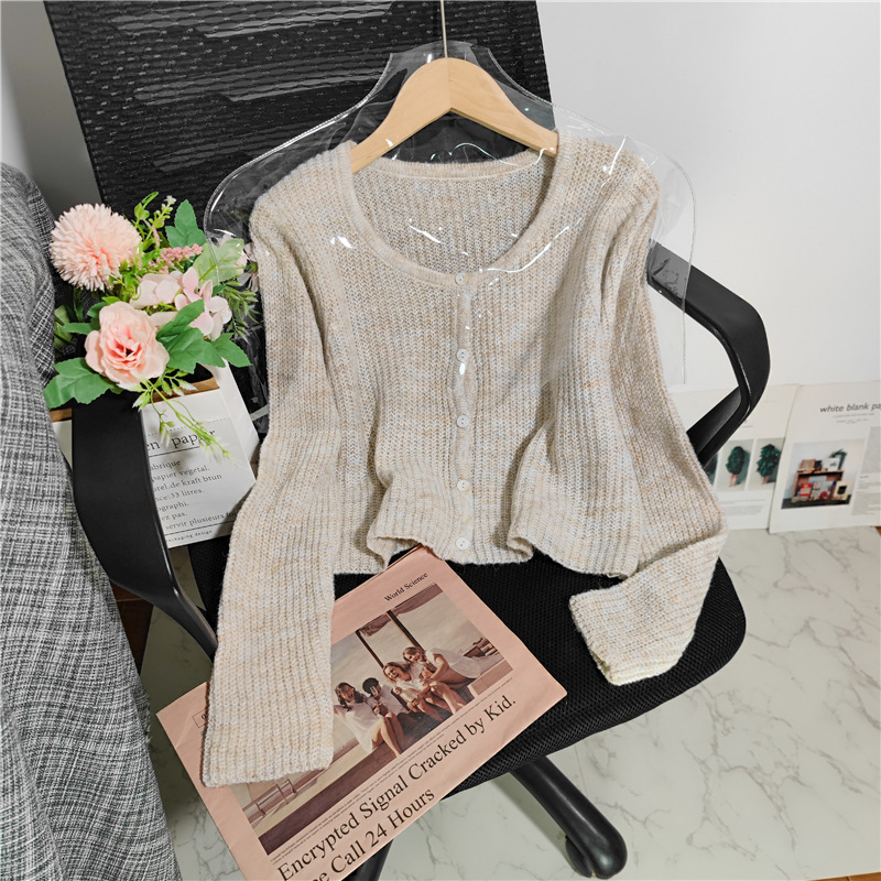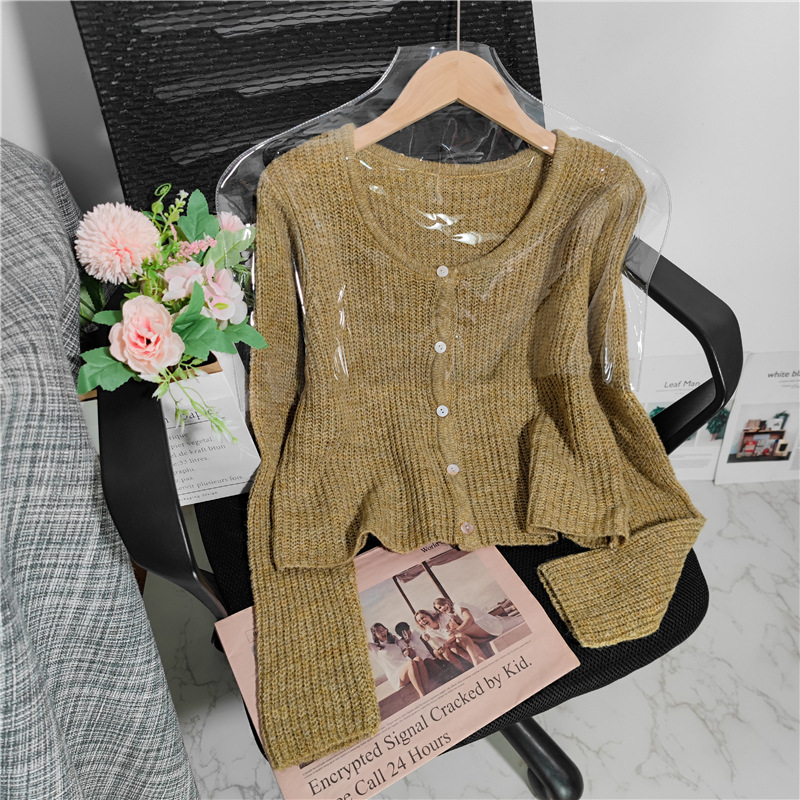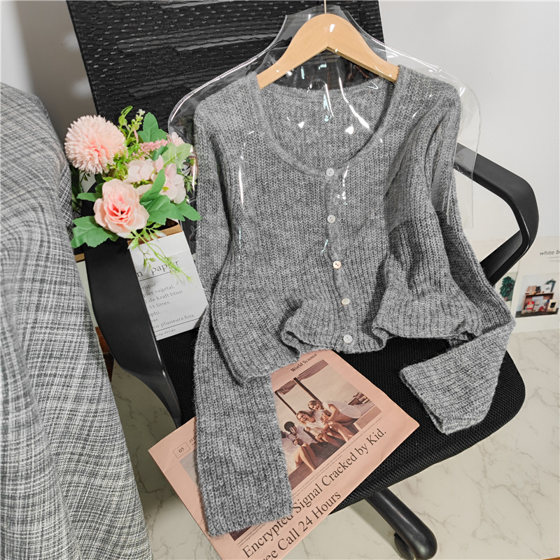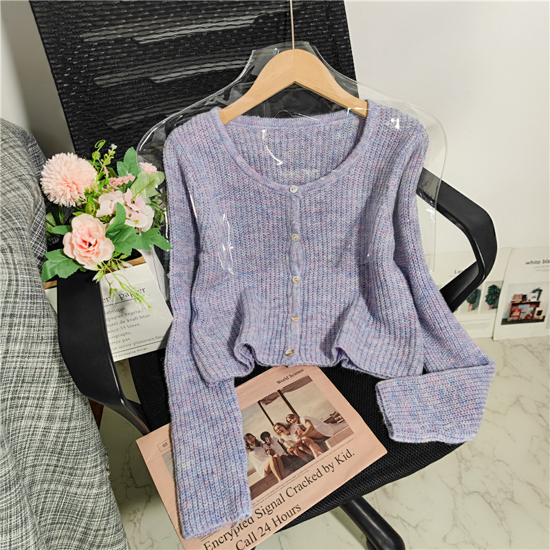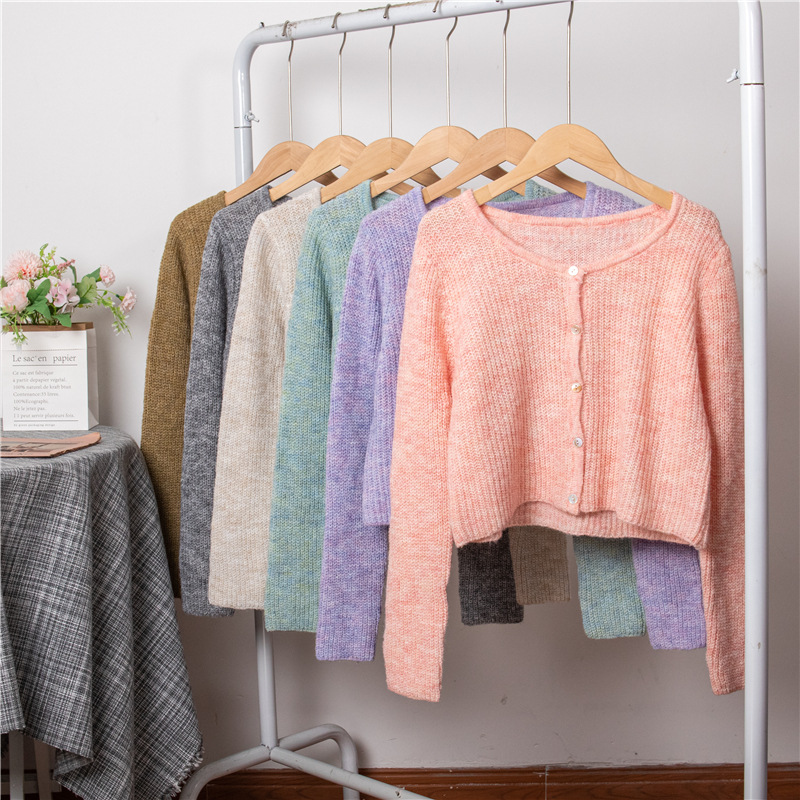 Fabric name: acrylic blendMain fabric composition: polyesterPattern: solid colorStyle: cardiganColor: grey, pink, purple, mustard green, apricot, greenSize: One SizeStyle type: fresh and sweet