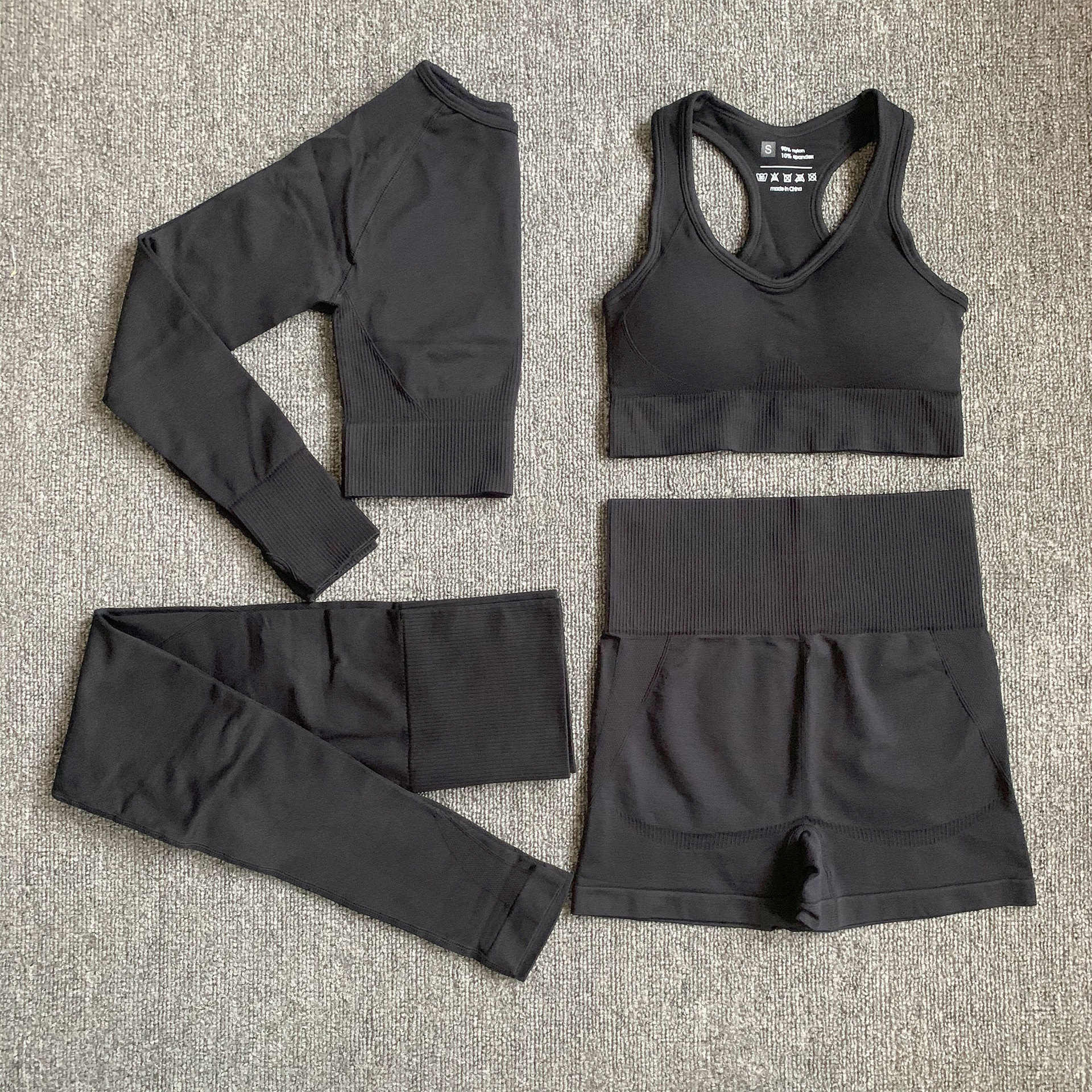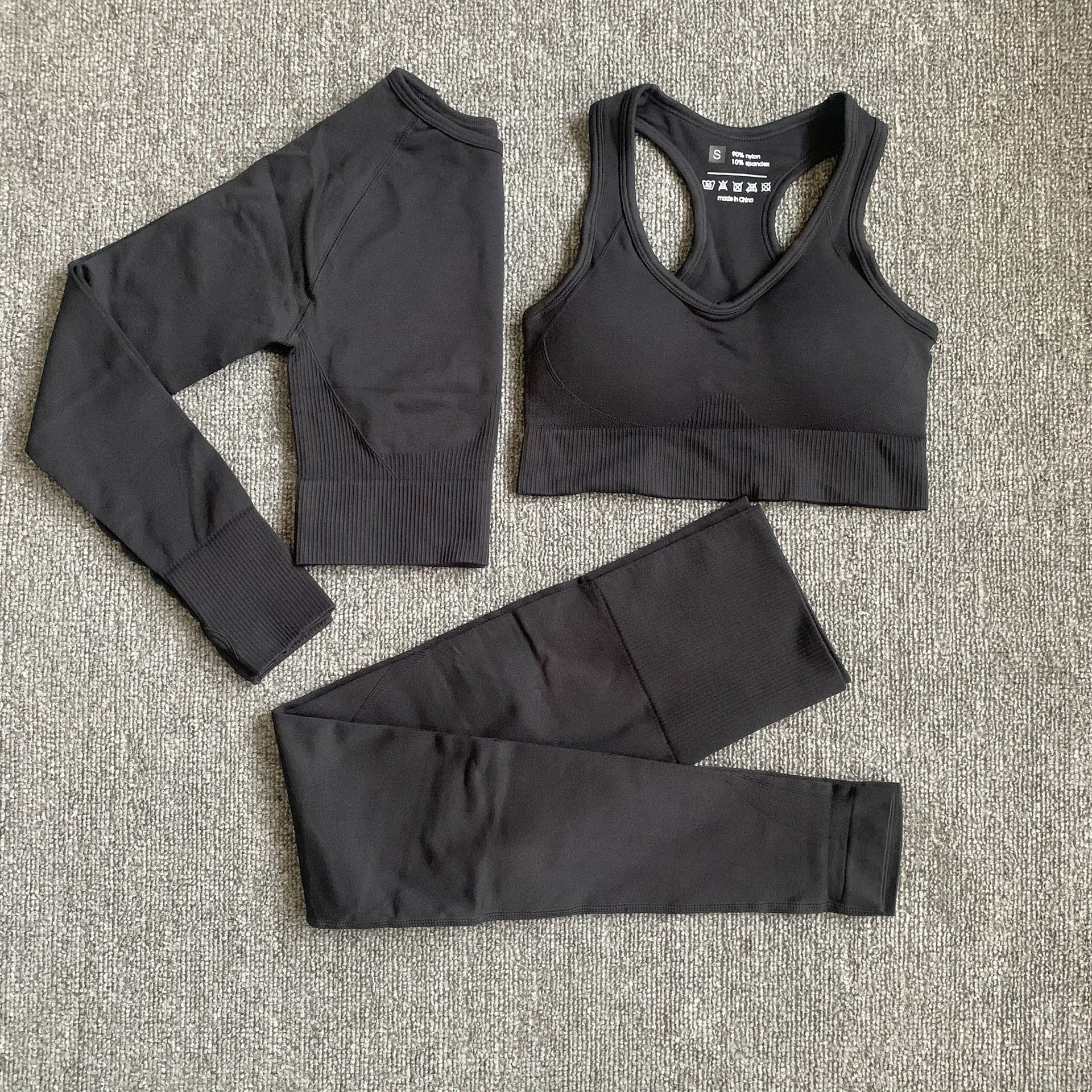 J: Long sleeves + bra + trousers black,