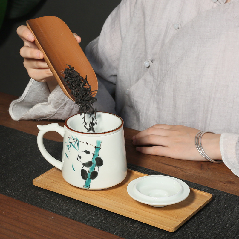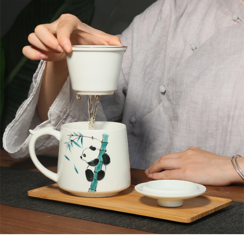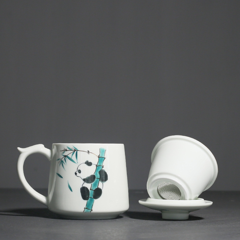 Applicable object: hand-painted panda water Cup hand-painted panda water cup gift box