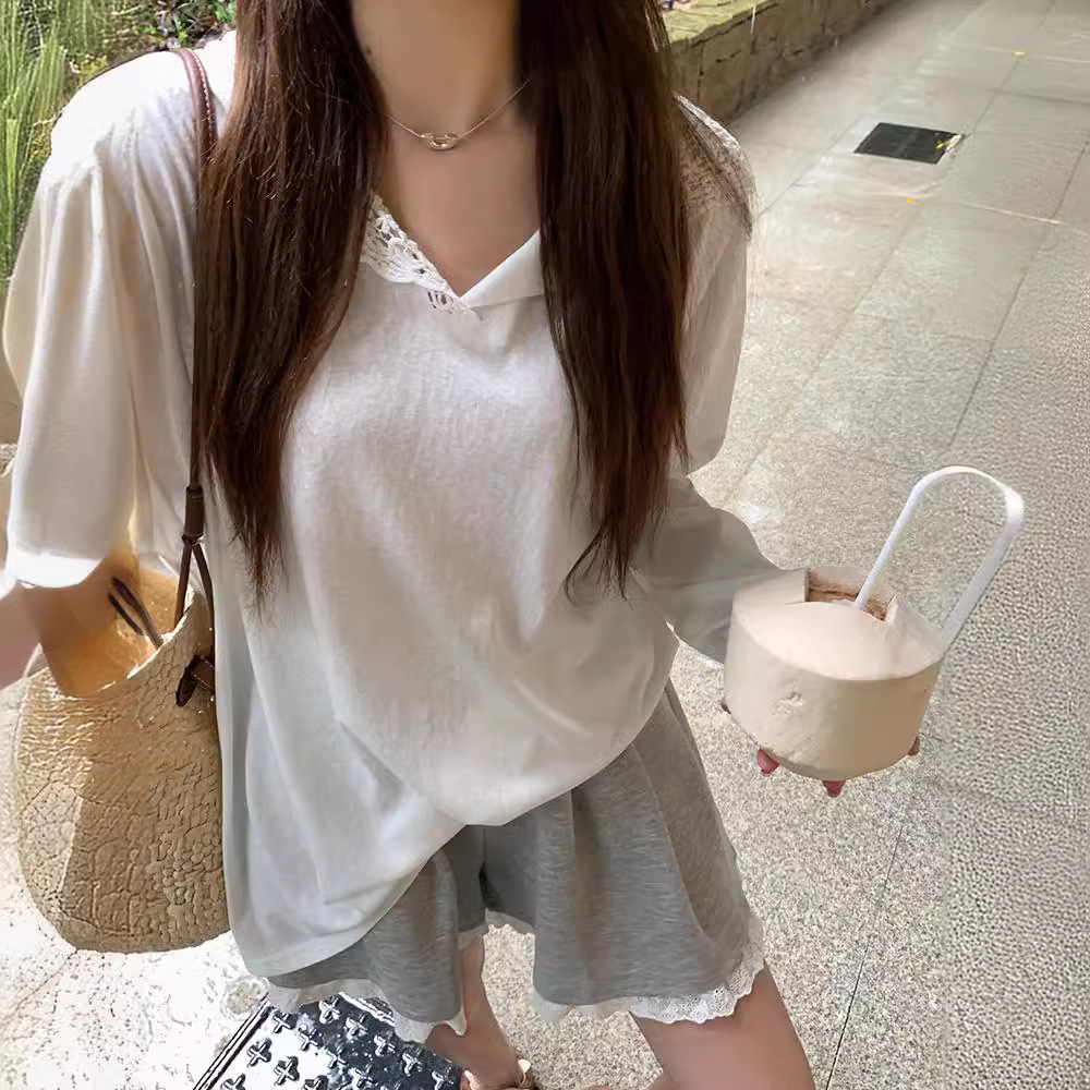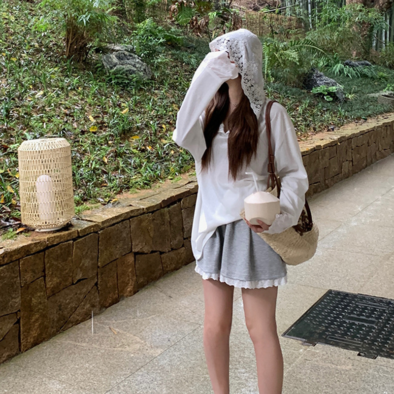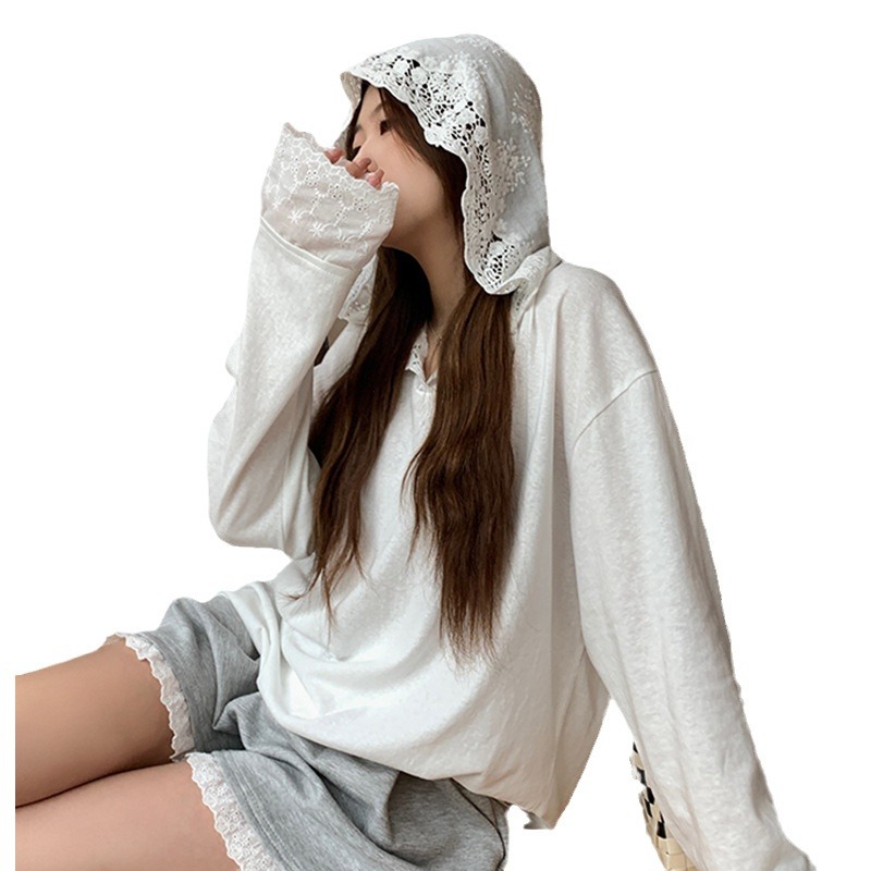 Product information: Color: White Size: S,M,L Version: Loose Style type: fresh and sweet Popular elements: lace Thickness: thin Fabric name: Polyester Main fabric composition: Polyester (polyester fiber) Sleeve length: long sleeve Style: sweet style