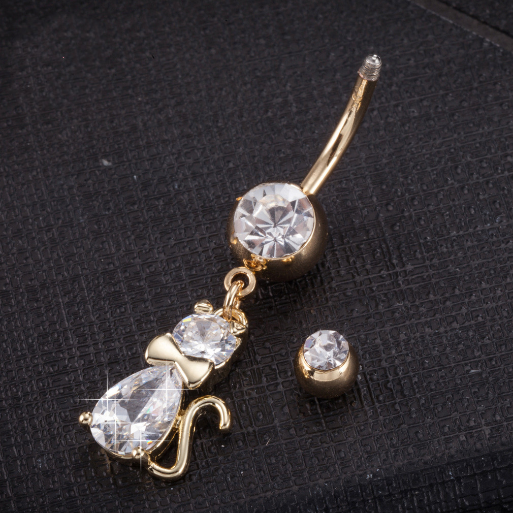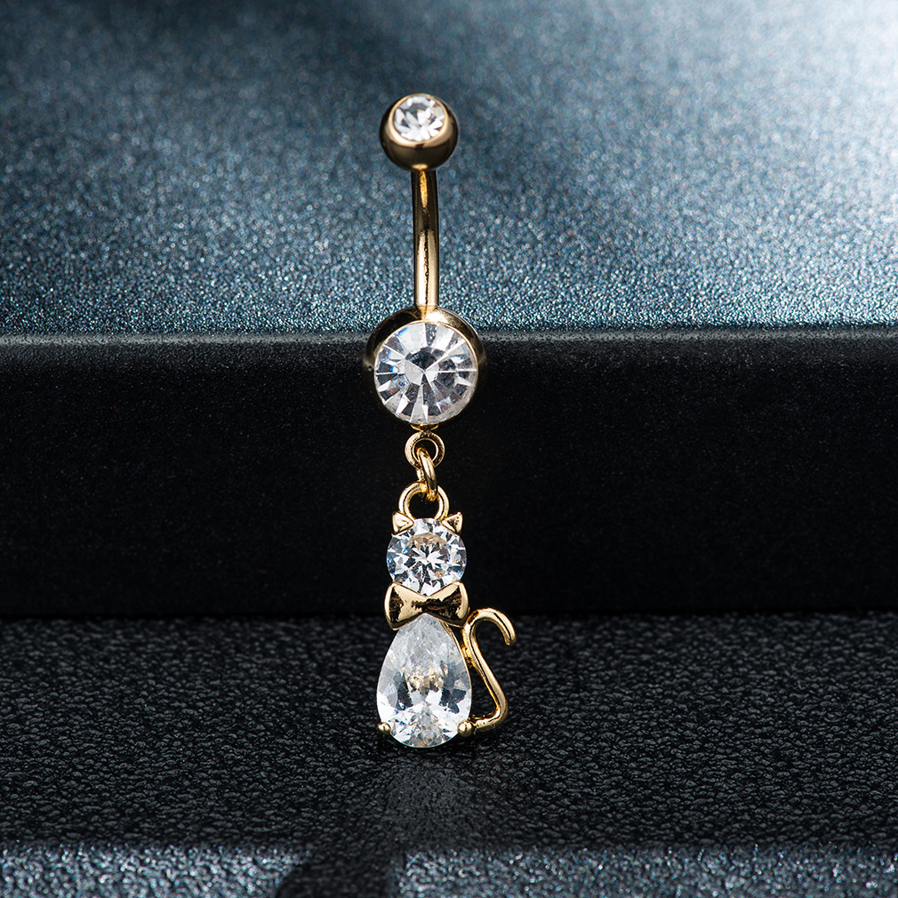 European And American Hot Cat Navel Ring Fashion Zircon Navel Nail Stainless Steel Navel Buckle Manufacturers Direct Sales