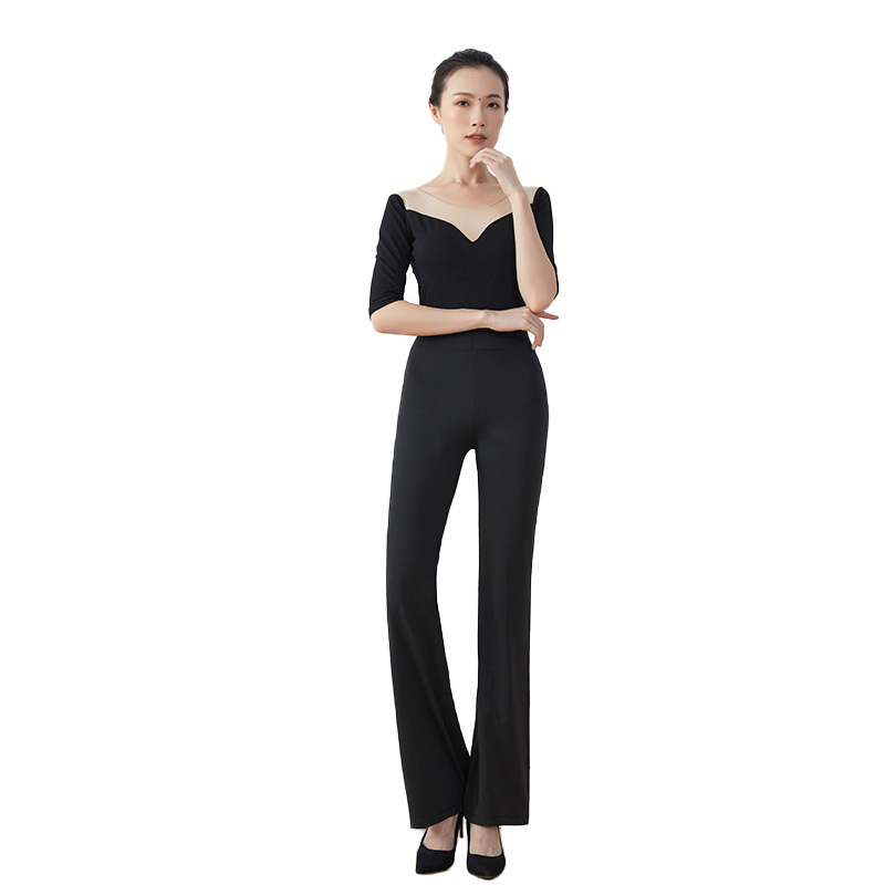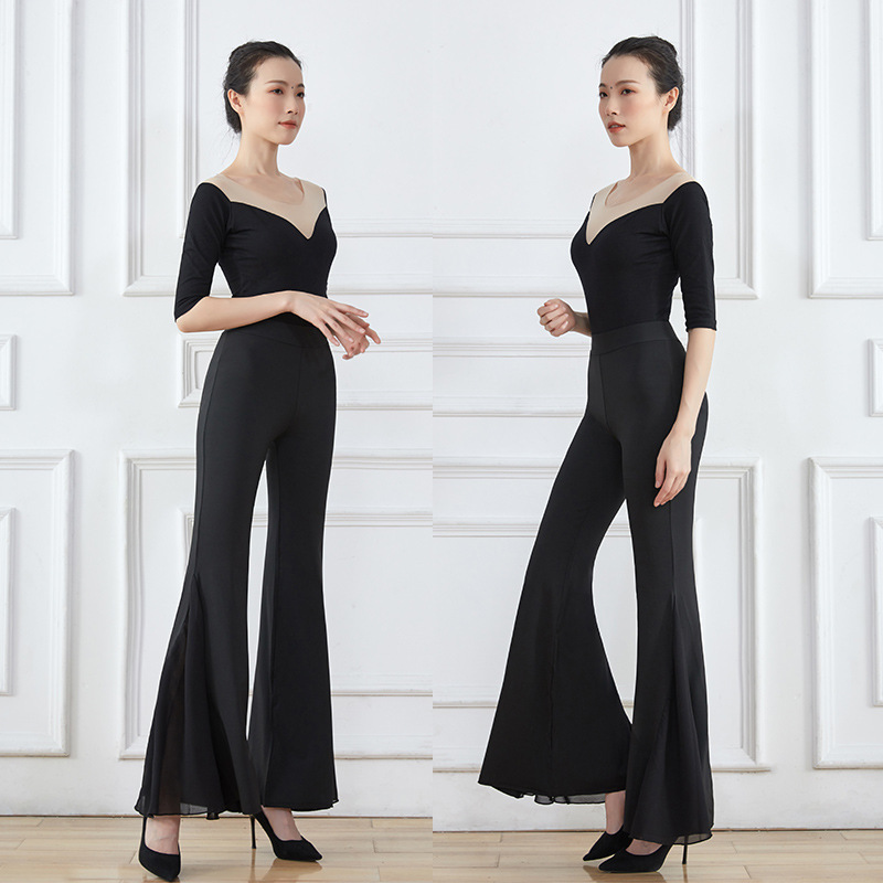 Color: 037 black middle sleeve+milk silk micro flare pants, 037 black middle sleeve+big flare pants (plus yarn)