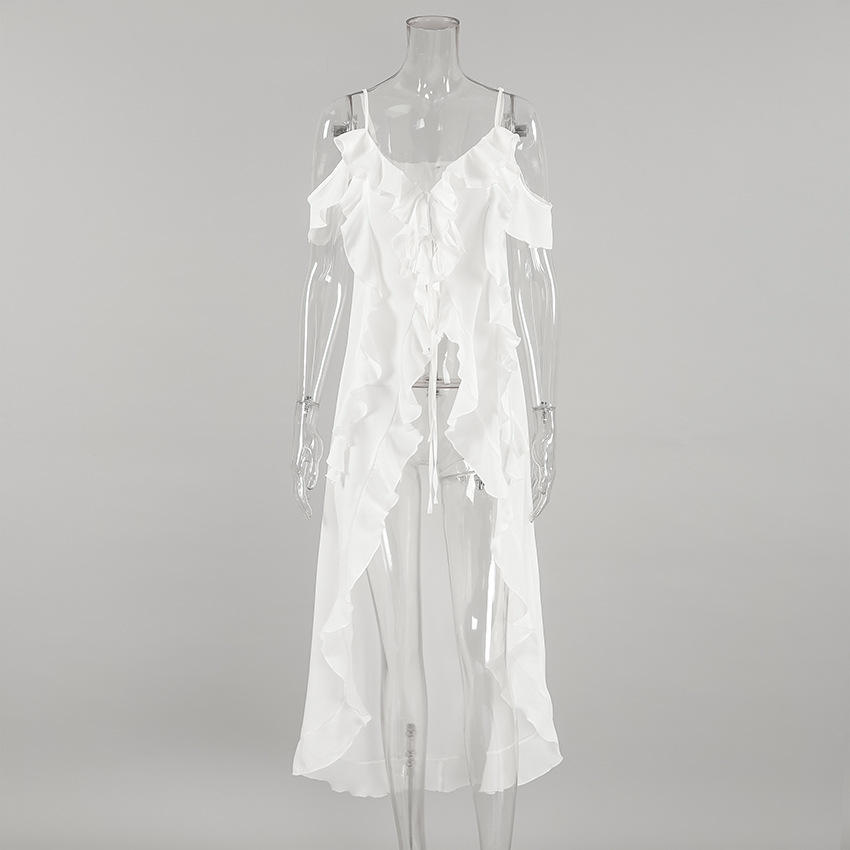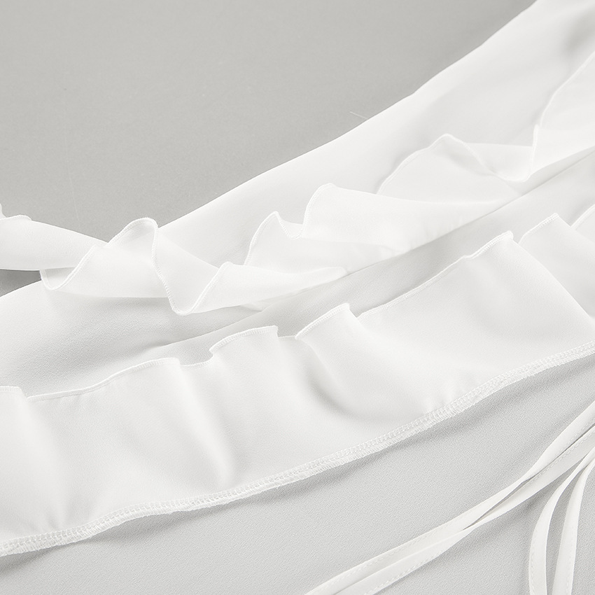 Product information: Pattern: solid color Color: White Waist type: high waist Size: S,M,L Popular elements: ruffles Main fabric composition: Polyester (polyester fiber)