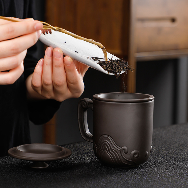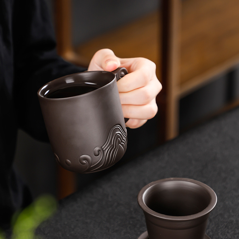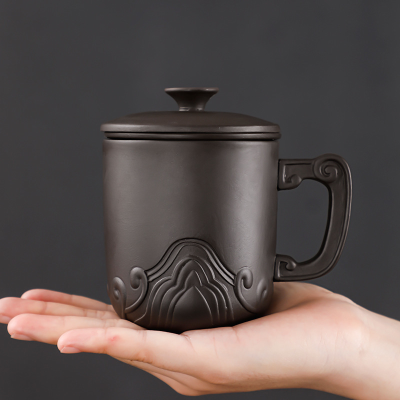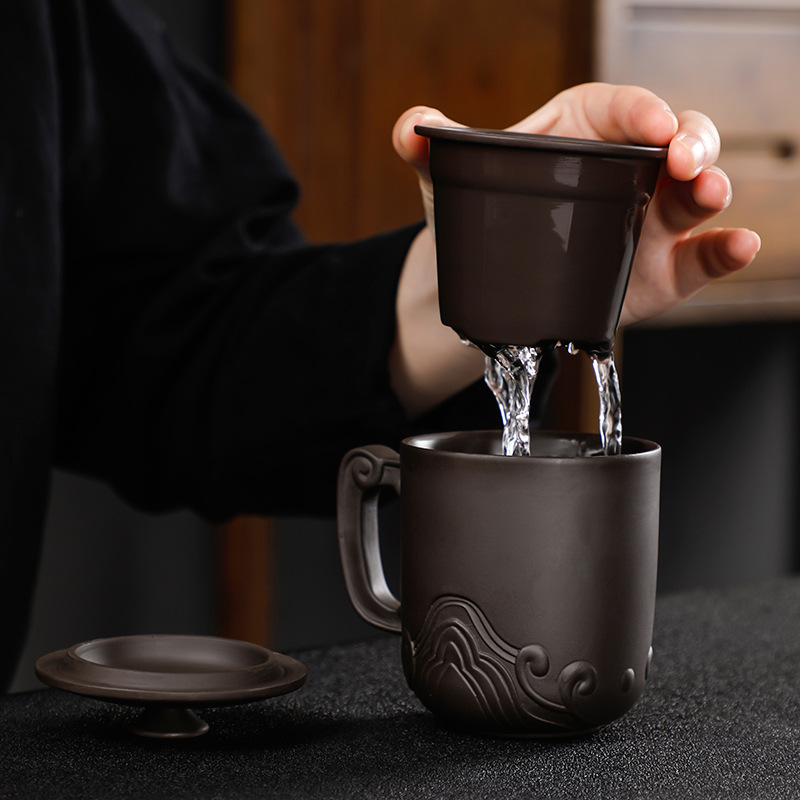 Material: purple sandStyle: ChineseFunction: high temperature resistanceMicrowave: availableShape: roundCup accessories: with lid and filter