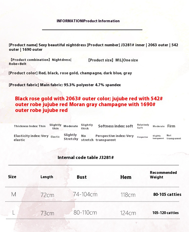 Color: J3281 champagne (nightdress),Q2790 apricot pink (outerwear gown)
