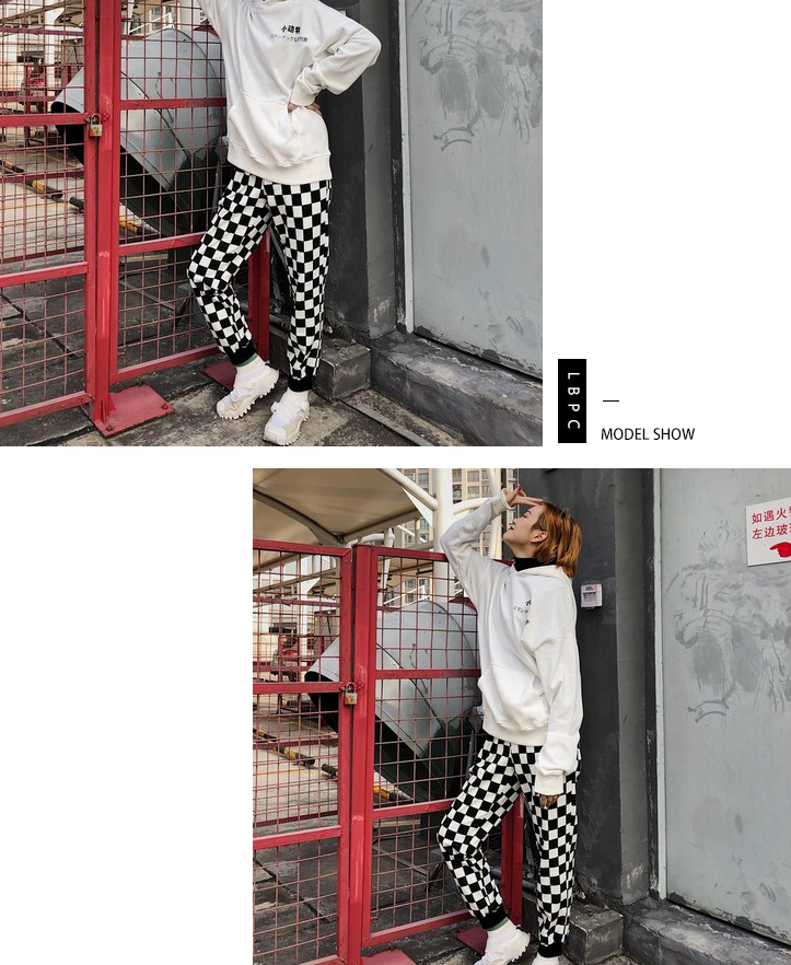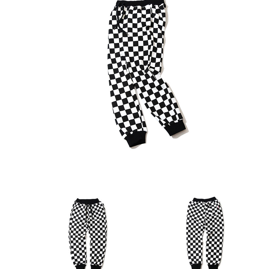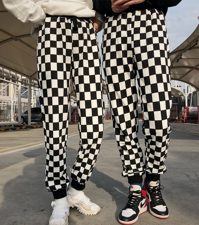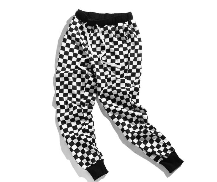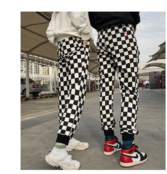 Couples pants new European and American street tide beam feet pants Harajuku black and white thousand bird pattern hip hop nine pants