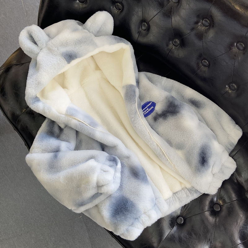 Product information:Fabric: imitation rabbit hairStyle: LeisureColor: Fashion stand collar warm hood cute bear earsSize information:Size: XS S M L XL 80cm 90cm 100cm 110cm 120cm 130cm 140cm 150cm 160cmPacking list:Coat X1PCS