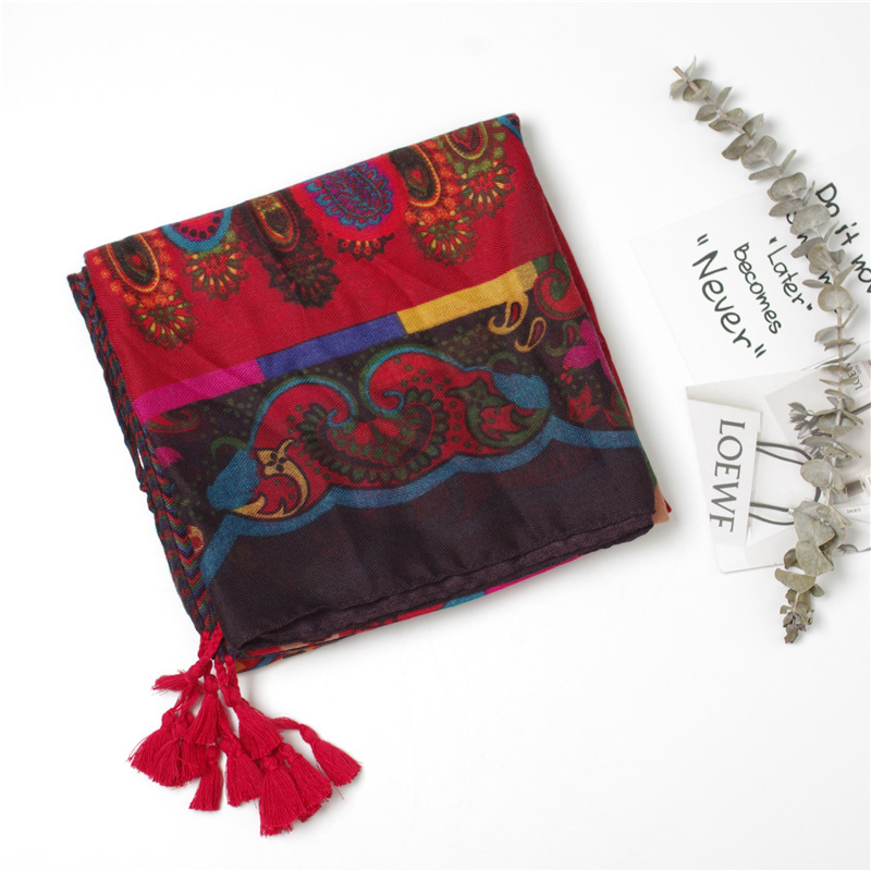 Material: cottonApplicable gender: femaleWeaving method: plain weaveProcessing method: printingPopular elements: tasselStyle: mid-lengthWidth (CM): 100Length (CM): 180*100