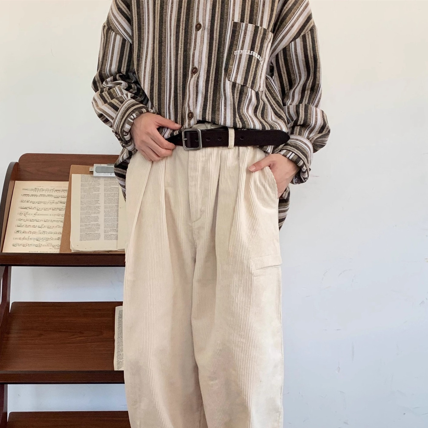 Product information: Pattern: solid color Color: Milky White, Black Size: M,L,XL,2XL Fabric name: corduroy Fabric: corduroy Main fabric composition: Polyester Fiber (polyester) Applicable Gender: Male