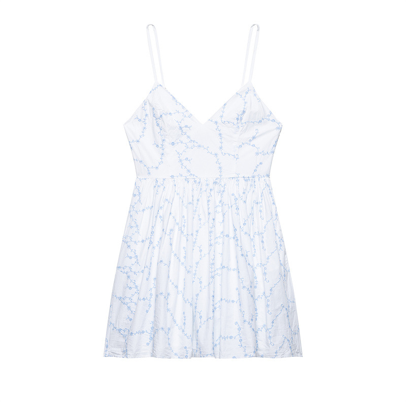 European And American Style Fashionable Simple Embroidered Poplin Sling Dress