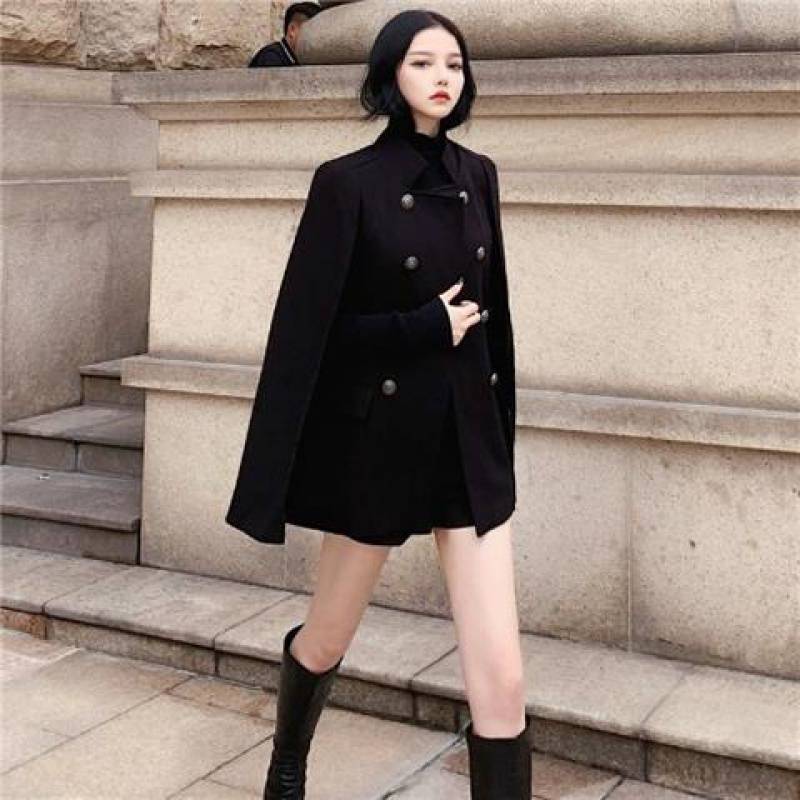 Product information :Pattern :OtherStyle: Simple commuter/Korean versionCollar type: stand collarPopular elements: otherProcess: solid color, buttonColour: BlackSize Information:Size: M, LPacking list:Woolen coat*1