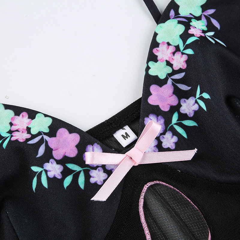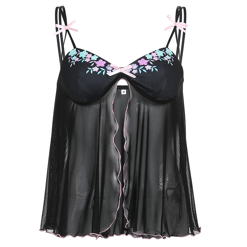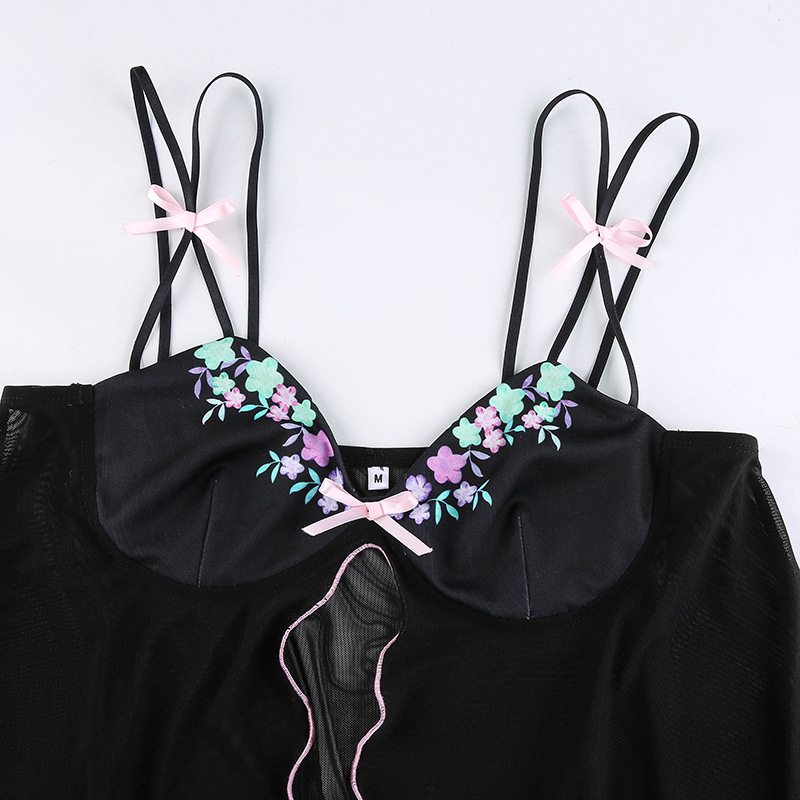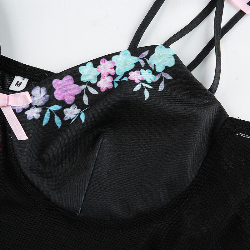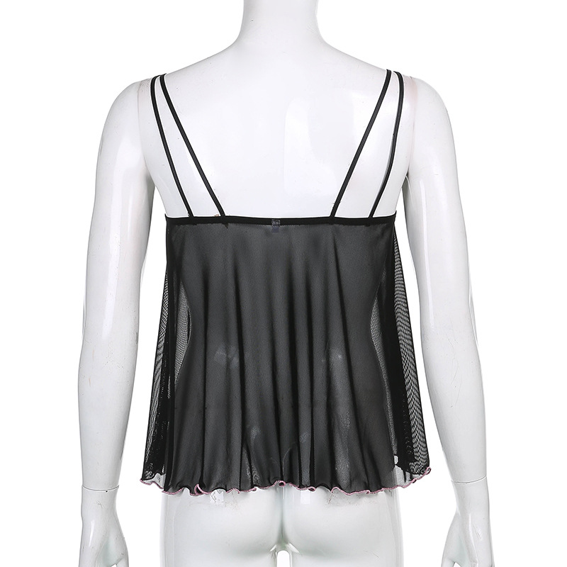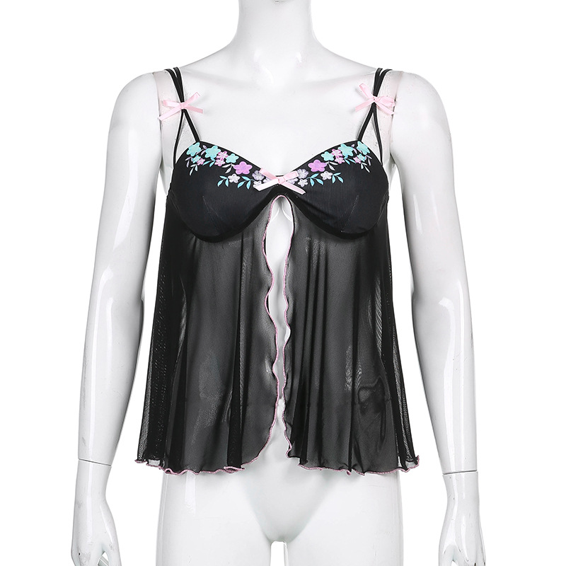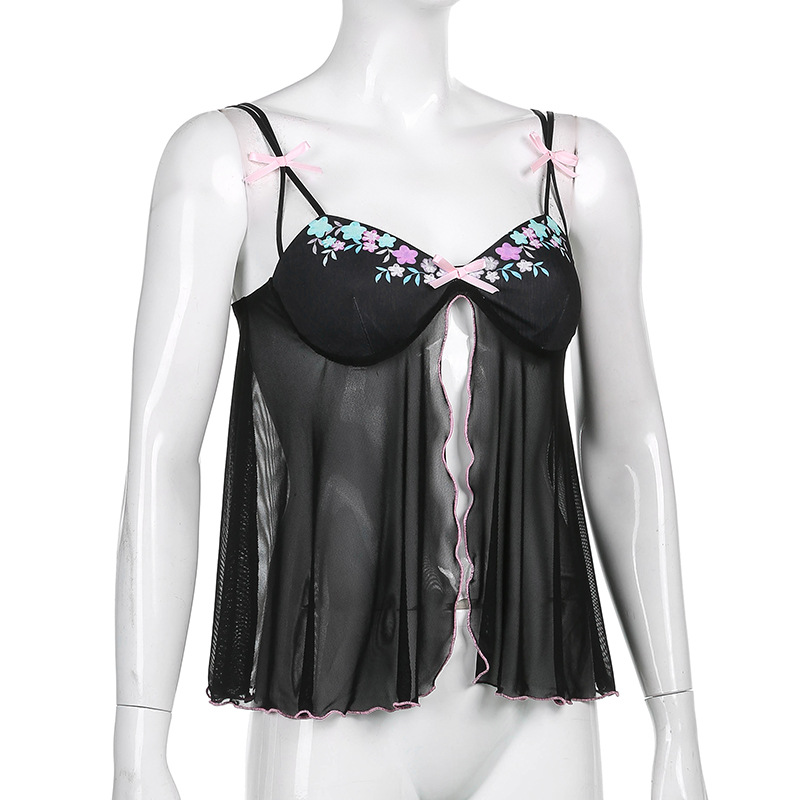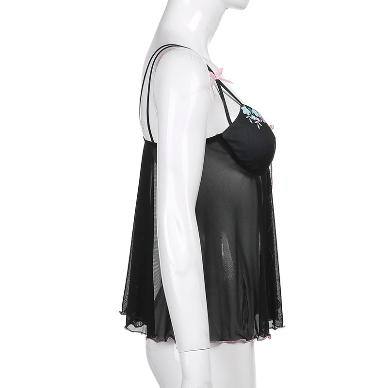 Ladies V-Neck Net Yarn Flower Lace Stitching Sling