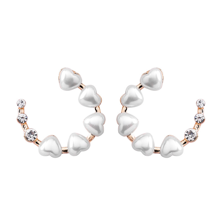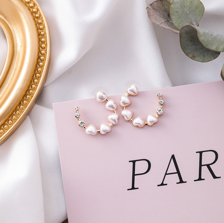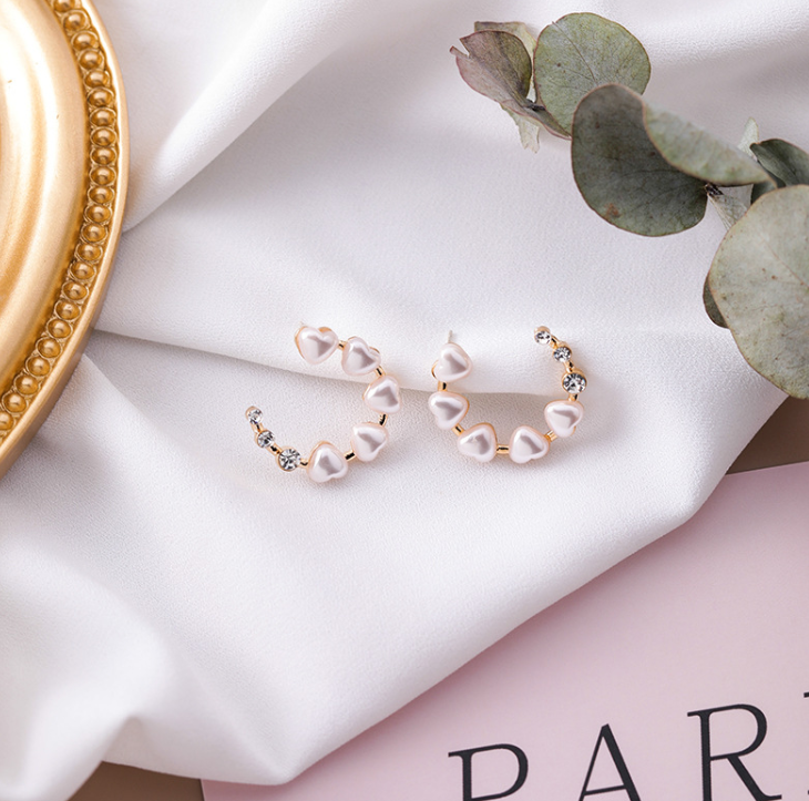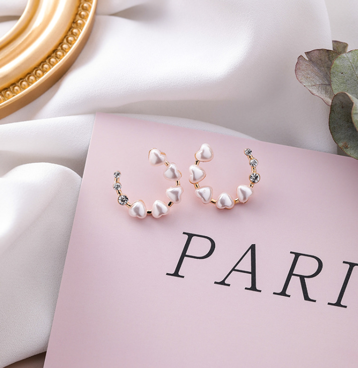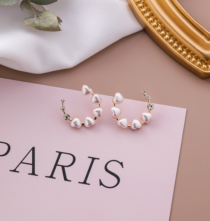 S925 silver needle love pearl diamond ring earrings hollow semi-circular heart-shaped earrings sweet temperament earrings female