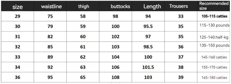 Size: 29 (49.50 kg-54.50 kg, 30 (55.00 kg-59.50 kg, 31 (60.00 kg-64.50 kg, 32 (65.00 kg-69.50 kg, 33 (70.00 kg-74.50 kg, 34 (75.00 kg-79.50 kg, 36 (80.00 kg-85.00 kg))