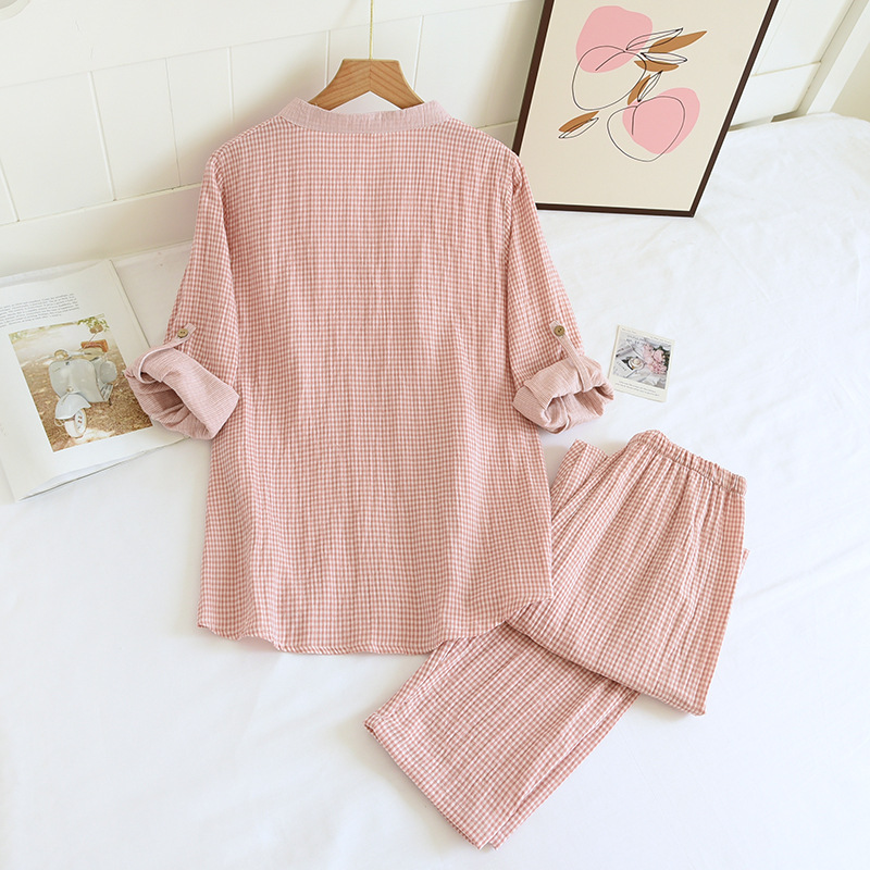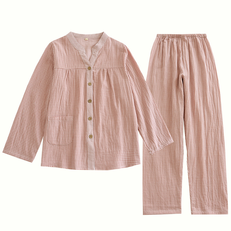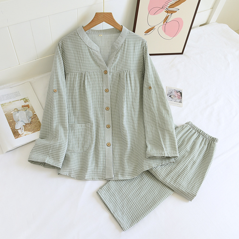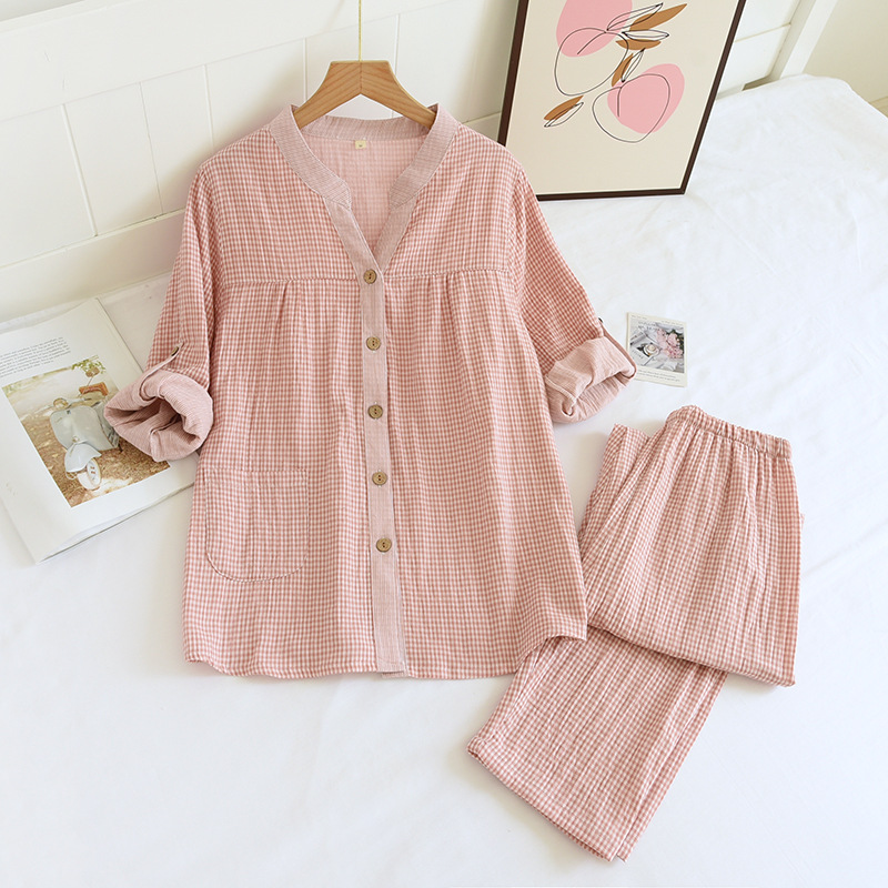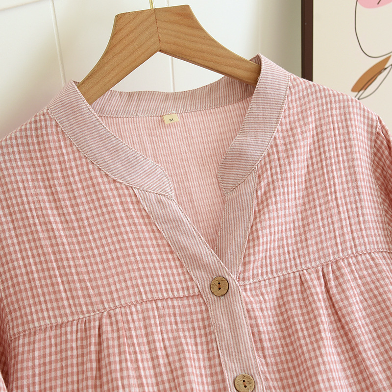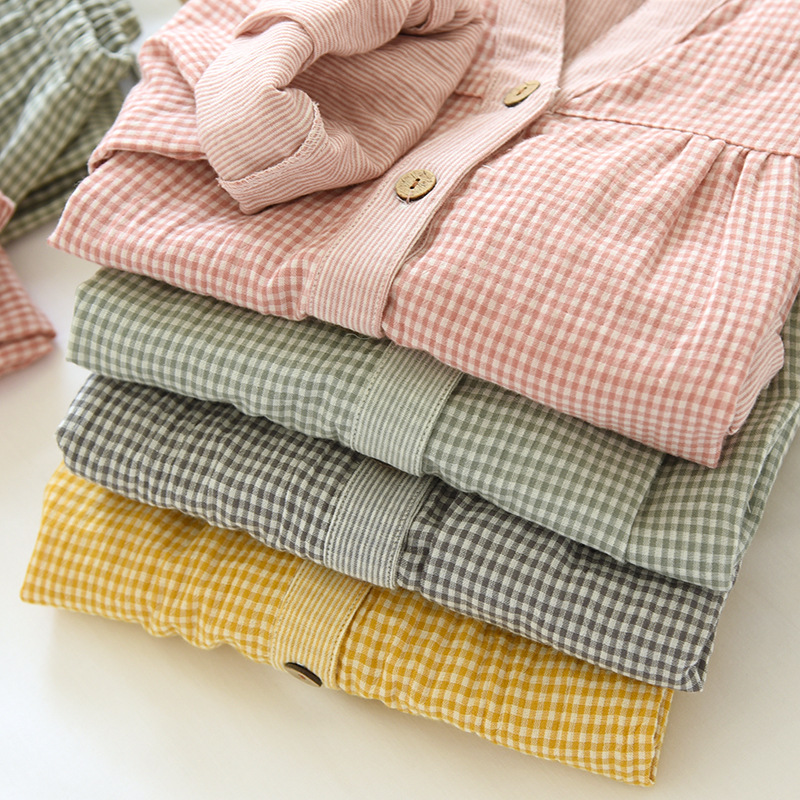 Color: yarn-dyed small plaid v-neck set-yellow, yarn-dyed small plaid v-neck set-small gray plaid, yarn-dyed small plaid v-neck set-small green plaid, yarn-dyed small plaid v-neck set-small pink plaid