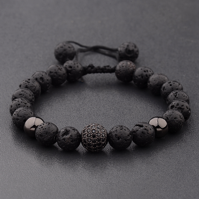 CZ Zircon Pave Lava Weaving Bracelet Men Beads