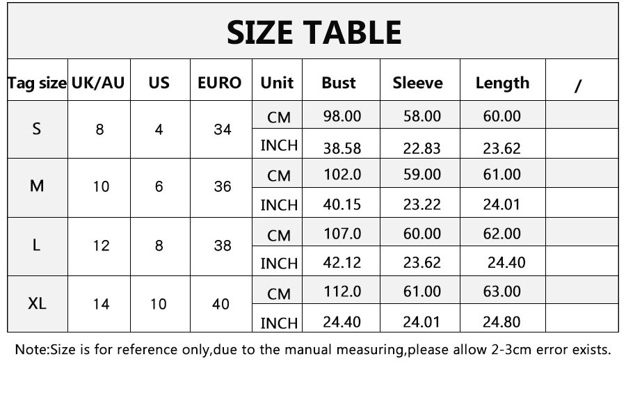 1. Asian sizes are 1 to 2 sizes smaller than European and American people. Choose the larger size if your size between two sizes. Please allow 2-3cm differences due to manual measurement. 2. Please check the size chart carefully before you buy the item, if you don't know how to choose size, please contact our customer service. 3.As you know, the different computers display colors differently, the color of the actual item may vary slightly from the following images.