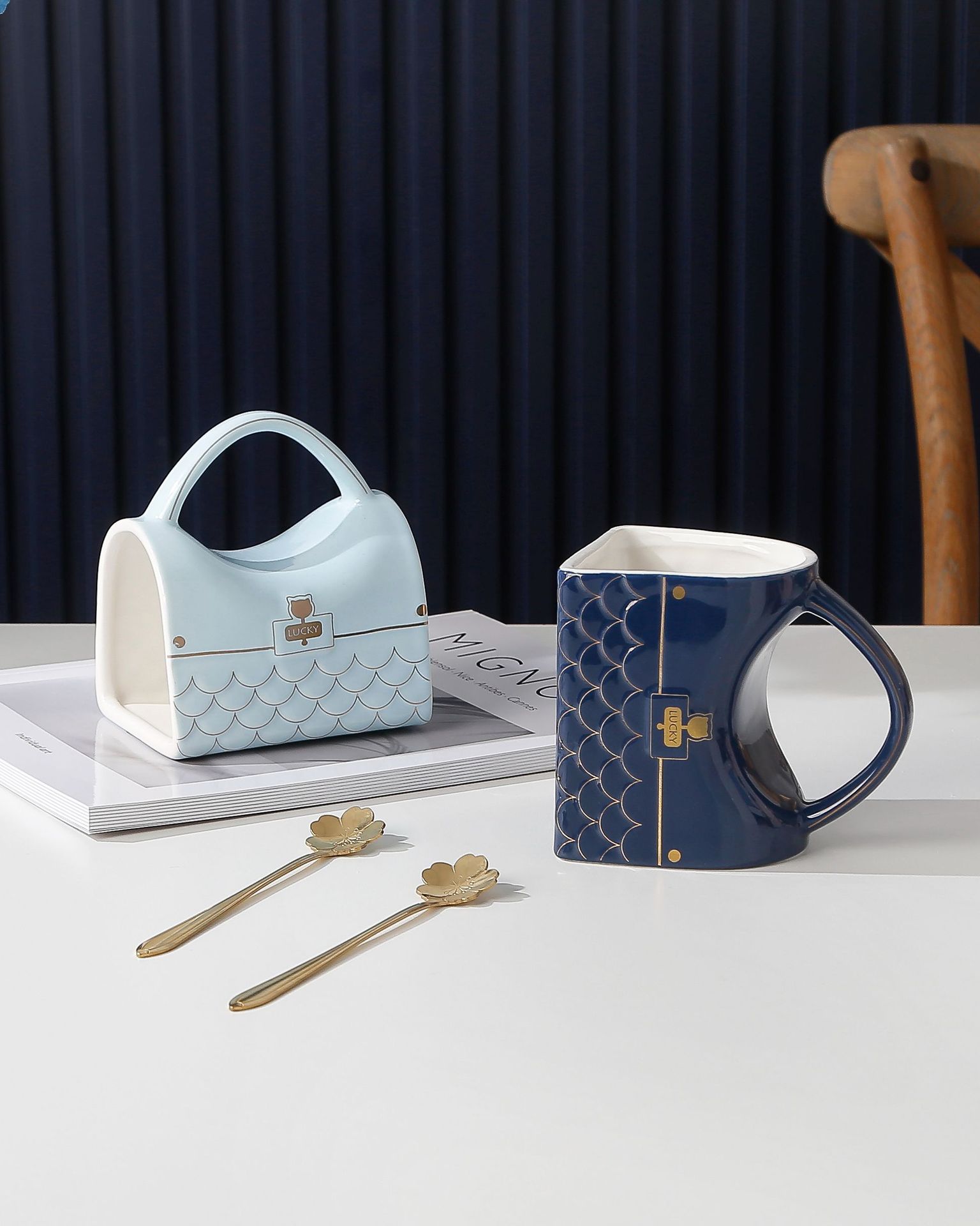 Color; Dark blue, Baby blue, pink, ivoryCapacity:400MLStyle: Creative trendMaterial: Ceramic