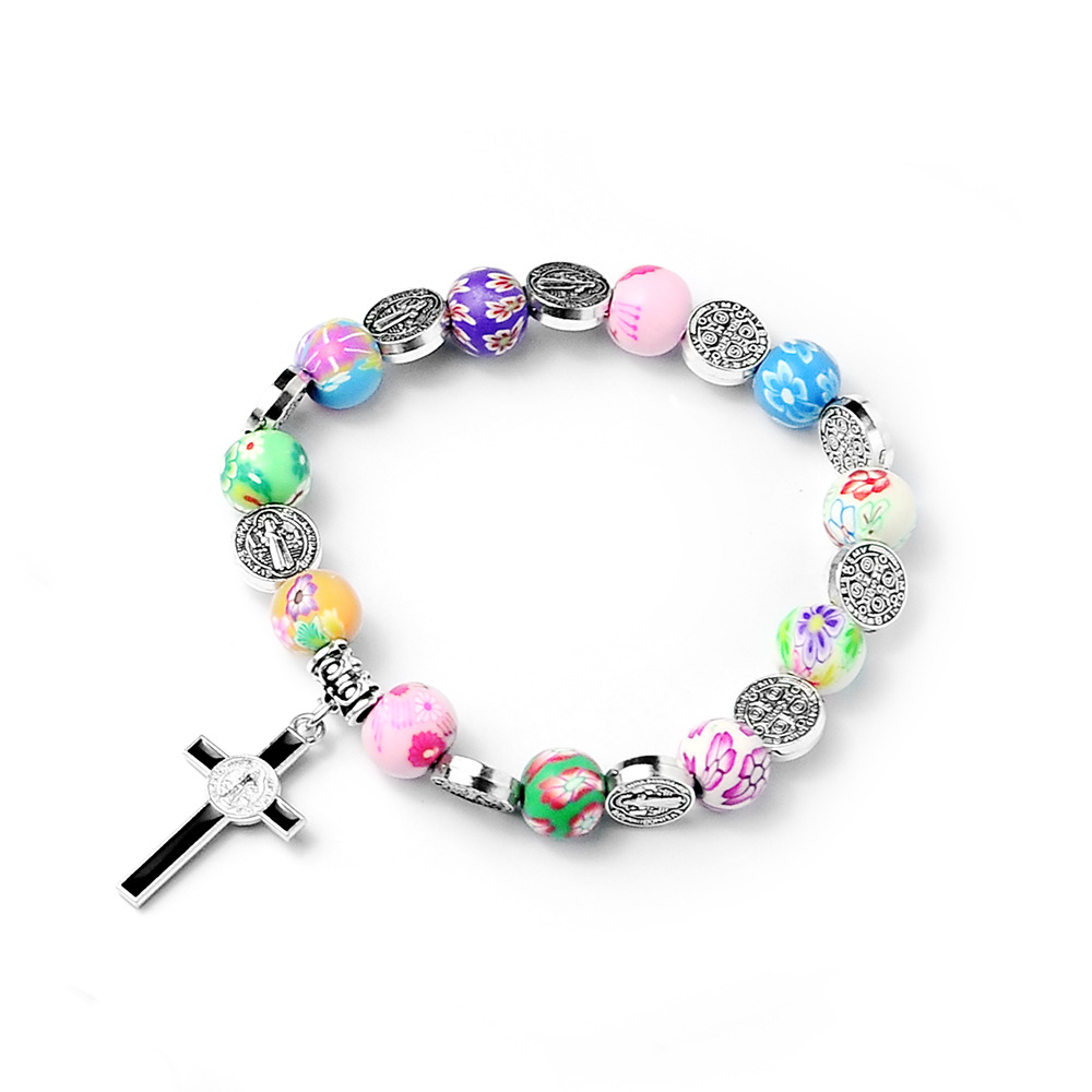 Colored Polymer Clay Cross Rosary Bracelet