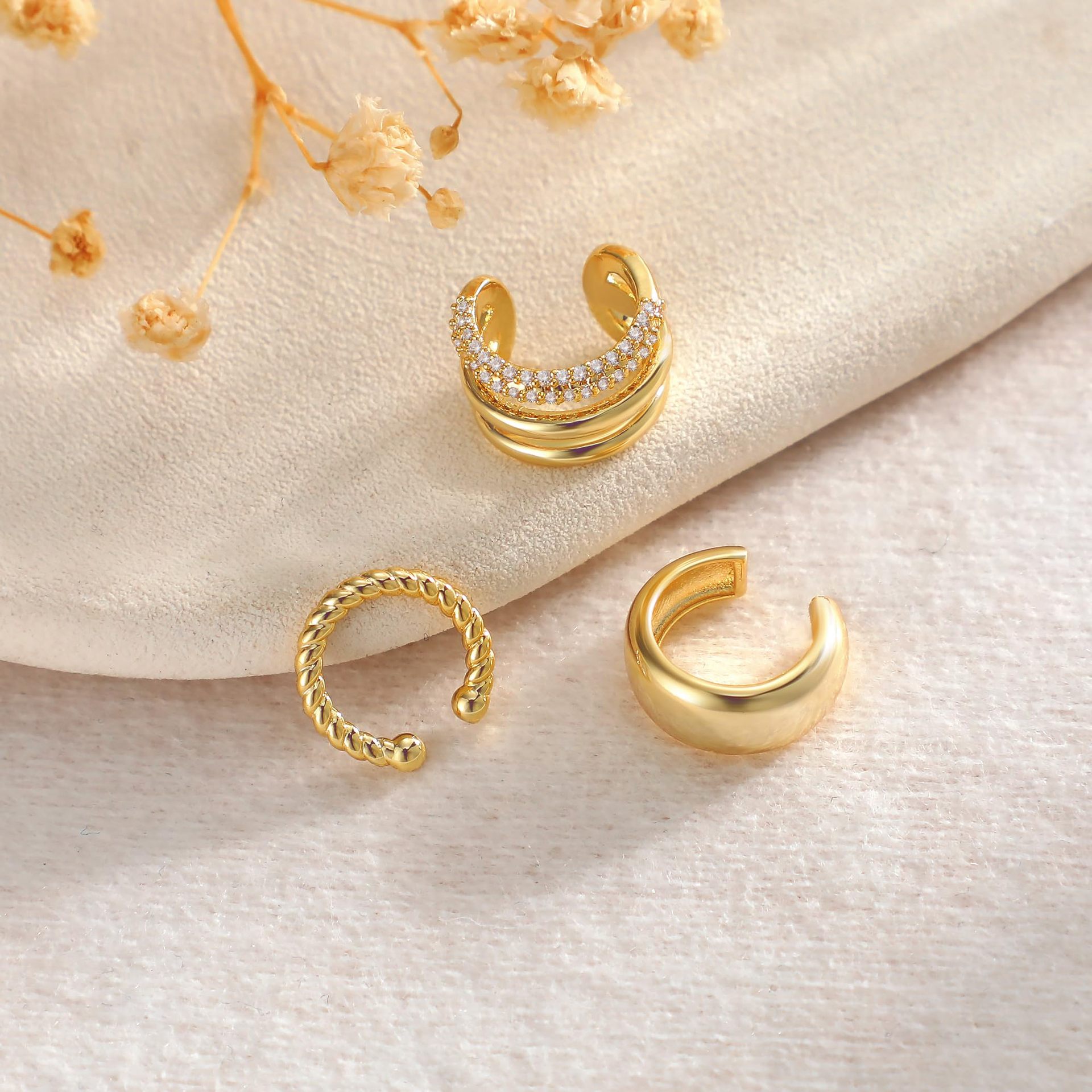 Product information:Treatment Process: Electroplating Color: gold single ear three-piece set Applicable population: Female Material: Copper Shape: U-shaped