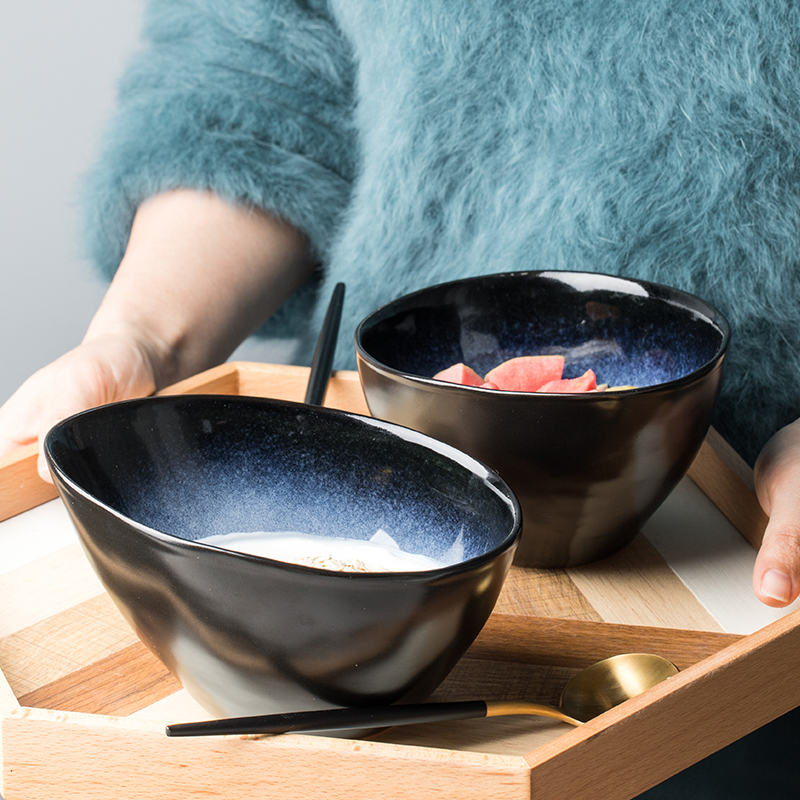 Household Personality Hot Pot Bowl Snack Noodle Bowl Oblique Mouth Cold Vegetable Bowl