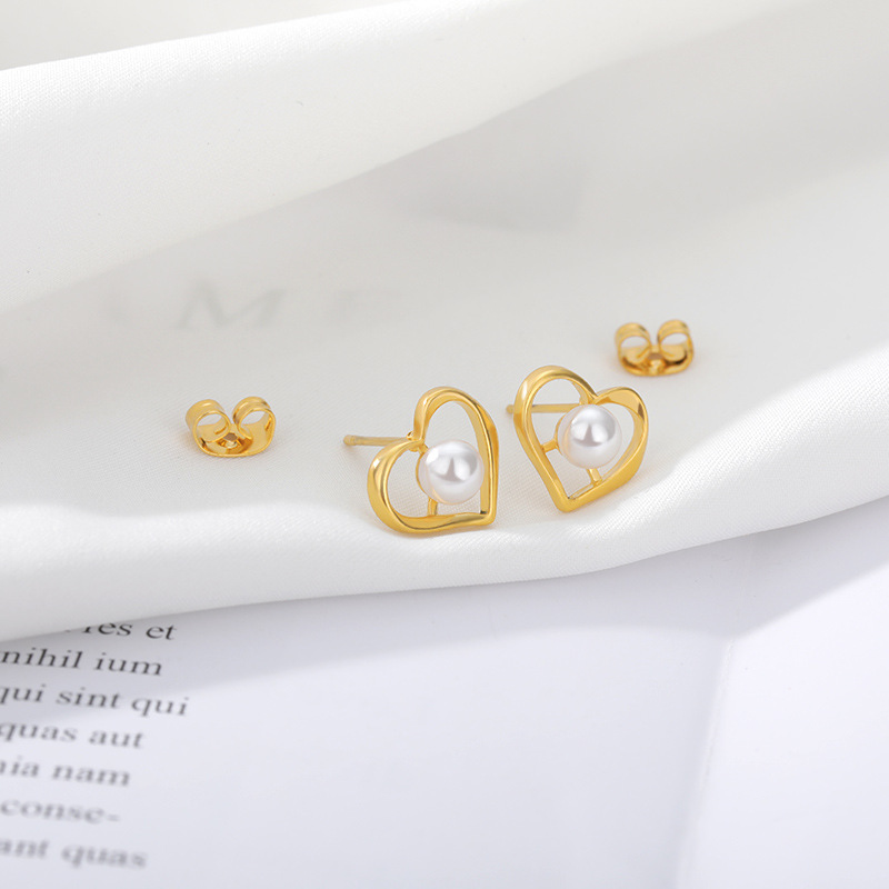 Pearl Love Hollow Earrings Stainless Steel Earrings