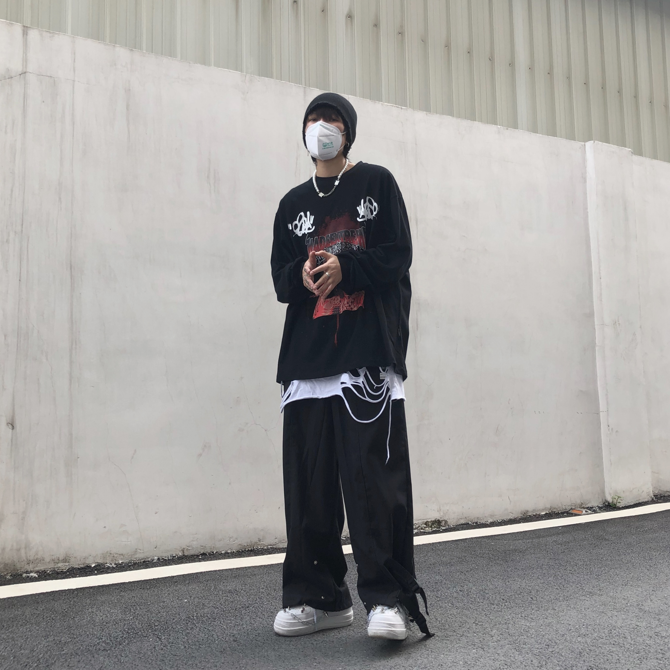 Black sleeve type: drop shoulder sleeve
