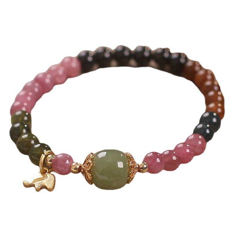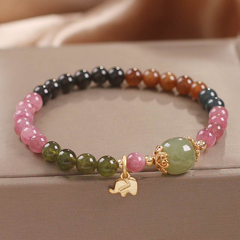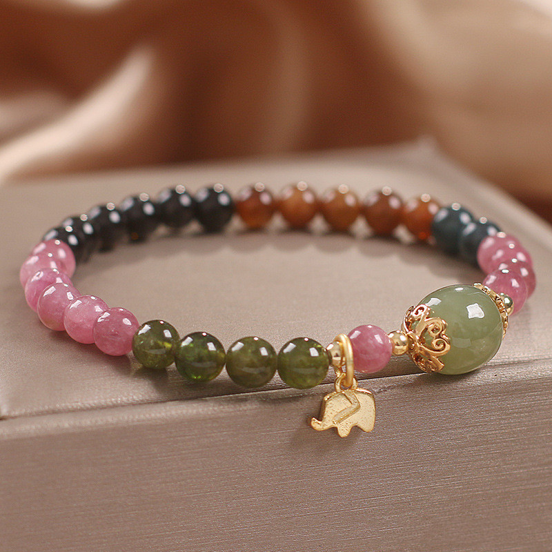Product information:Color: colorful tourmaline Hetian jade beads Lucky Elephant Style: Women's Material: Tourmaline Modeling: animal/Zodiac Style: Original design