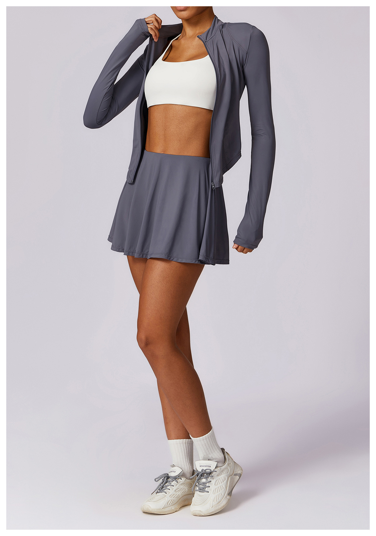 Color: Coat + short skirt fumigating purple, coat + short skirt far Gray, coat + short skirt sky blue, coat + short skirt caramel mocha, coat + short skirt rose pinkcoat + short skirt advanced black