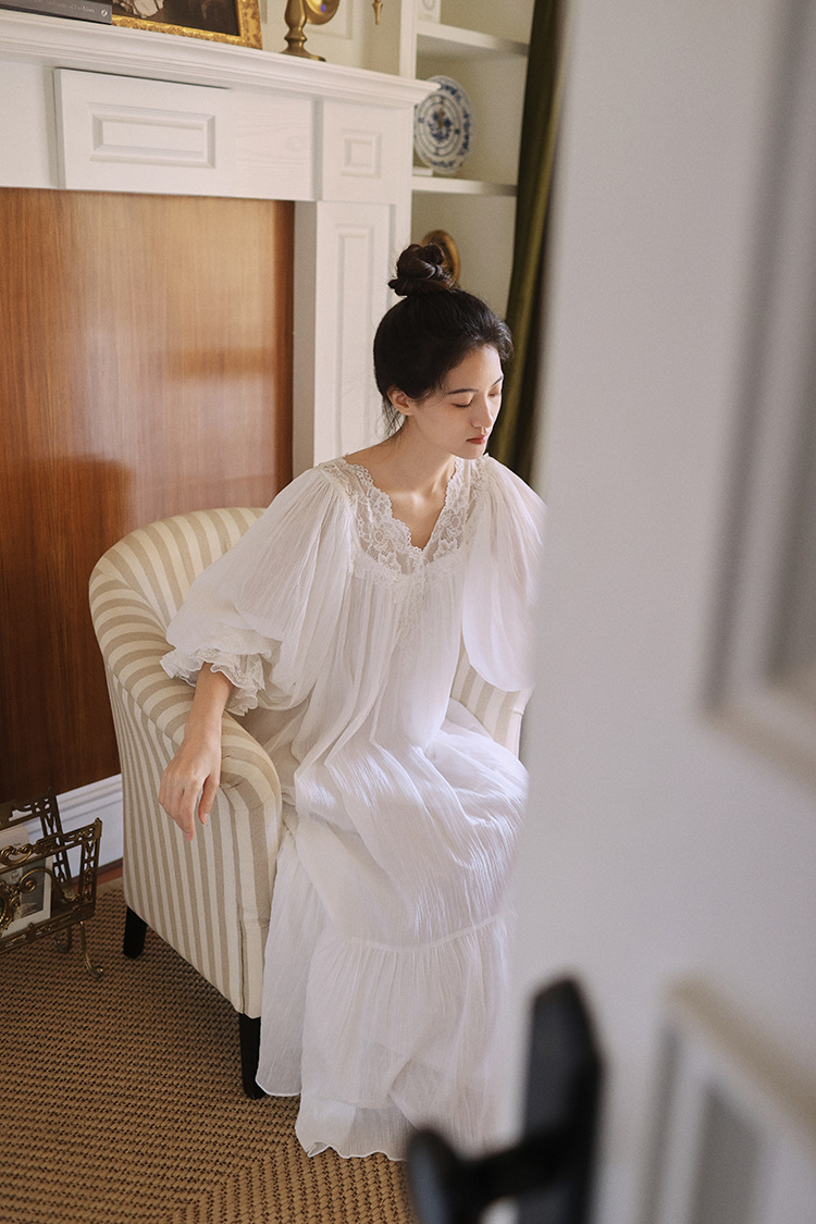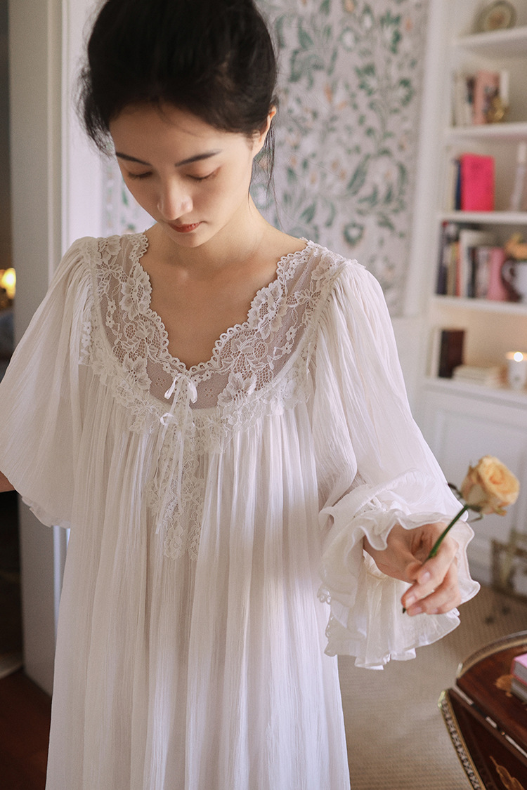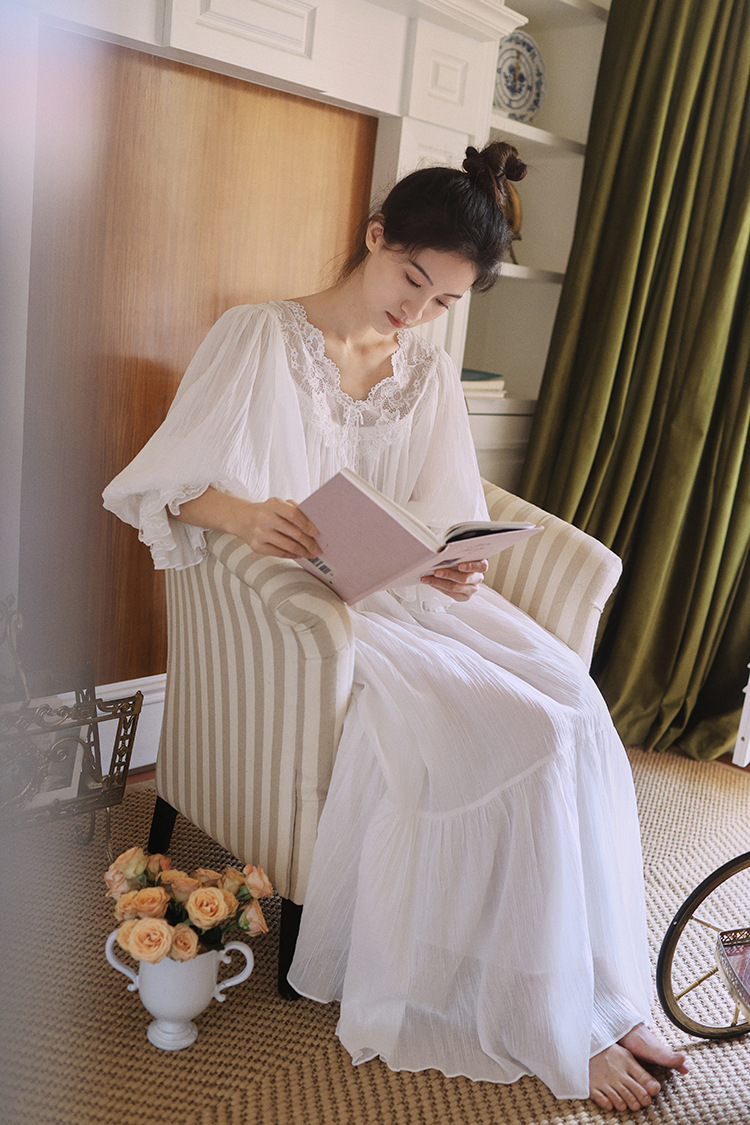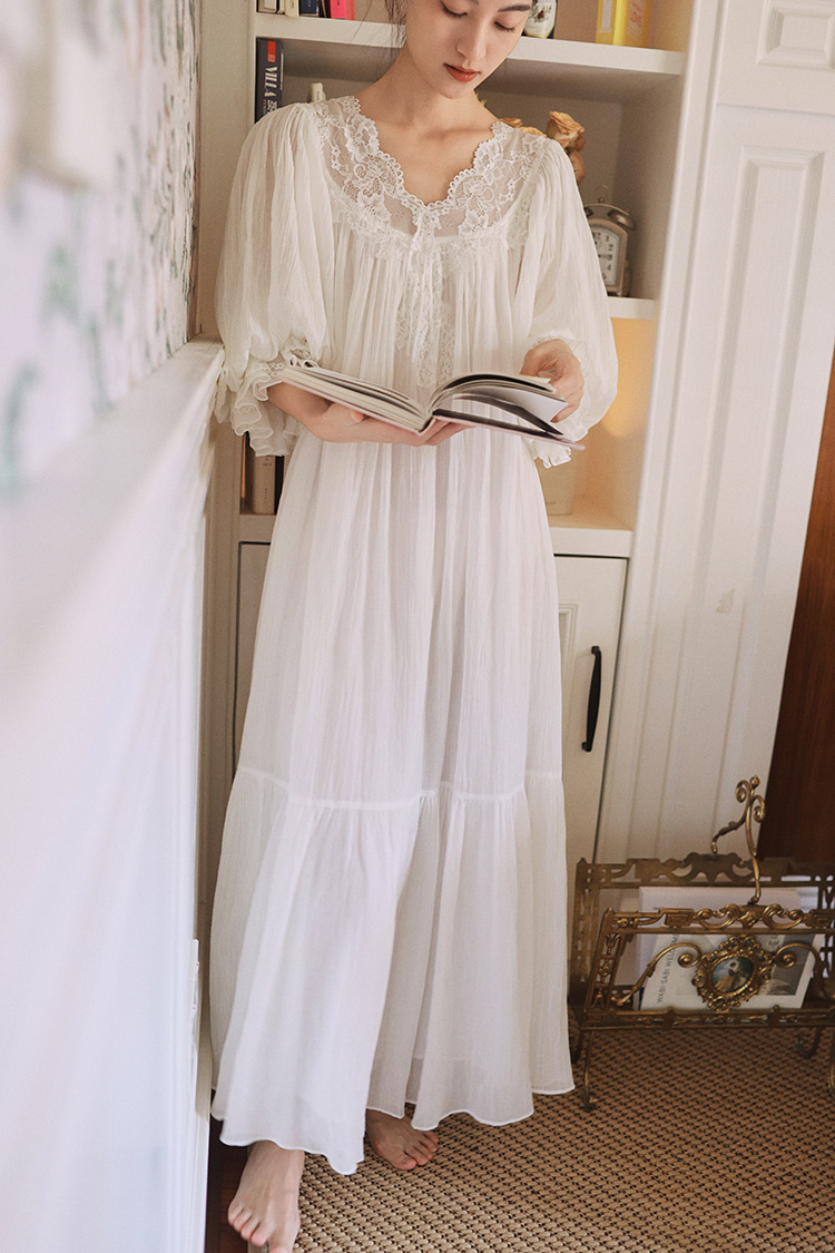 Product information: Fabric name: Cotton Color: White Size: S,M,L,XL Skirt length: long skirt Sleeve length: long sleeve Style: Fairy style