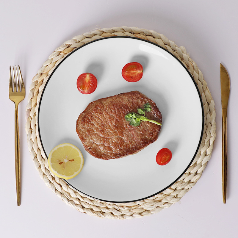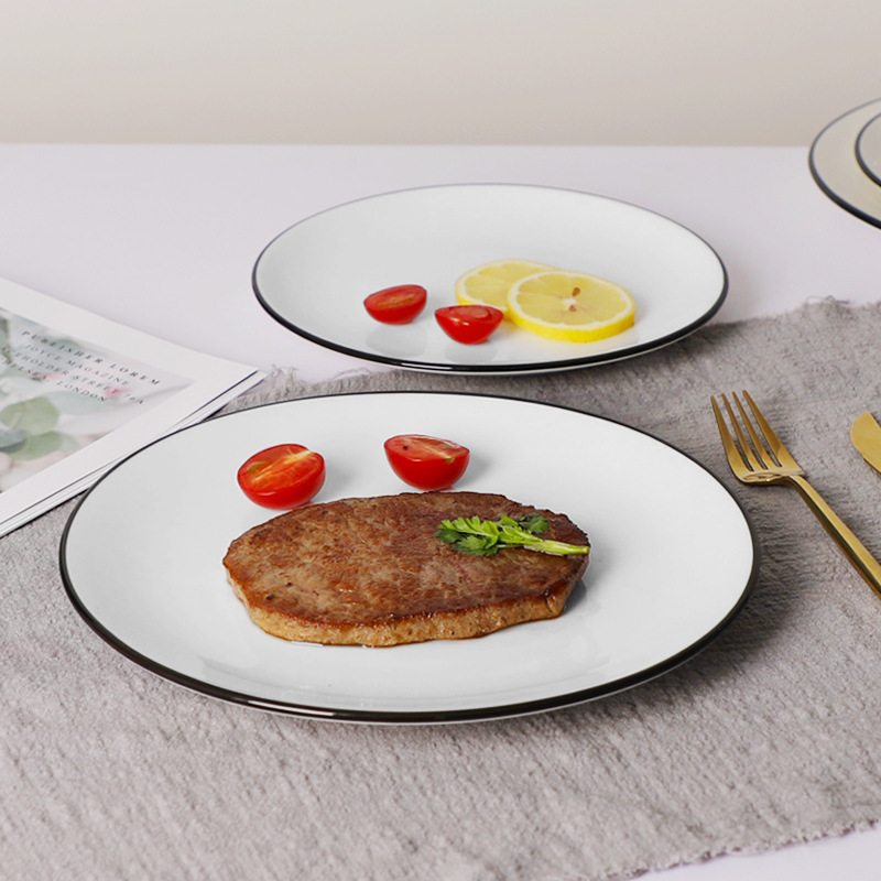 Color: 8-inch black-edged plate with 2 desserts, fruit plate, 8-inch black-edged plate with 4 desserts, fruit plate, 10-inch black-edged plate with 2 steak plates, A01 style knife, fork and spoon 3 piece set, A02 style knife, fork and spoon 3-piece set