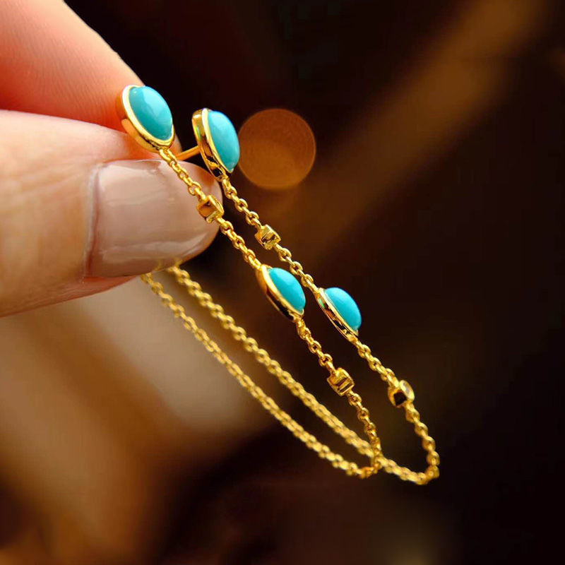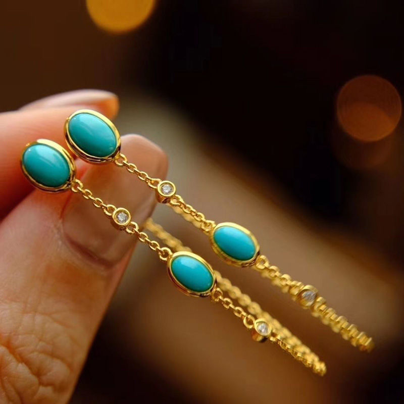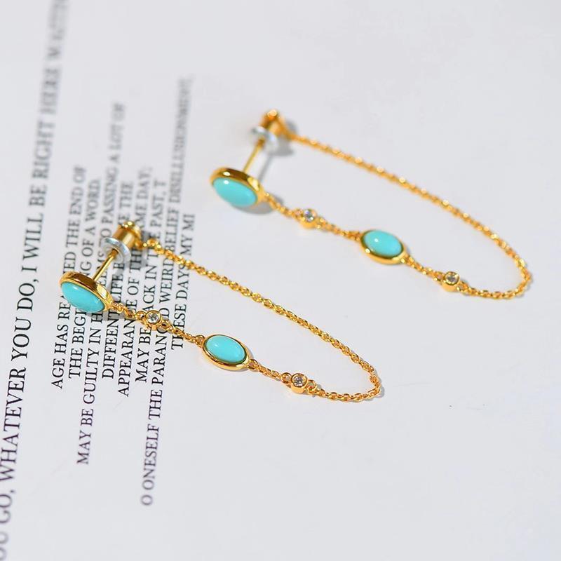 Style: Couple styleInlay material: 925 silverColor: turquoise tassel earringsPurity: (S925 sterling silver pair)Ear-piercing material: 925 silver