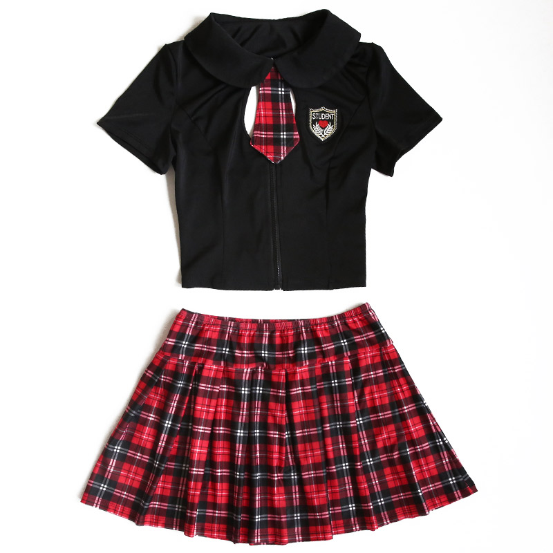 size: one sizeColor Classification: A: Top, bow tie and skirtB: Top bow tie skirt + black fishnet stockingsC: Top tie skirt + black student socks