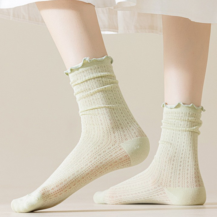 Summer Socks For Children Fungal Edge Thin Mesh Loose Mouth Stacked Breathable Middle Tube Socks