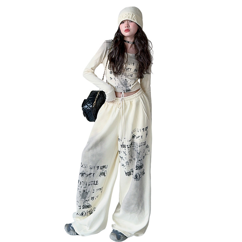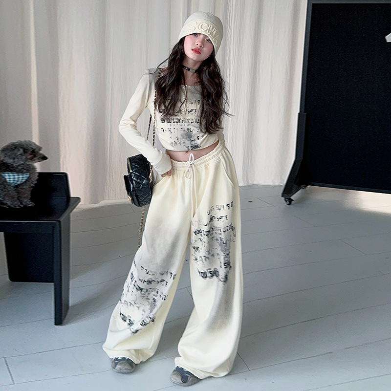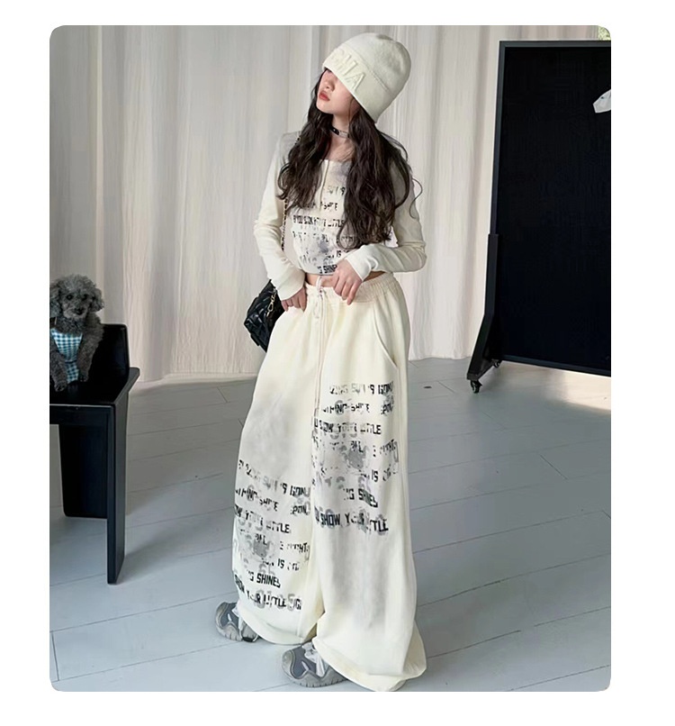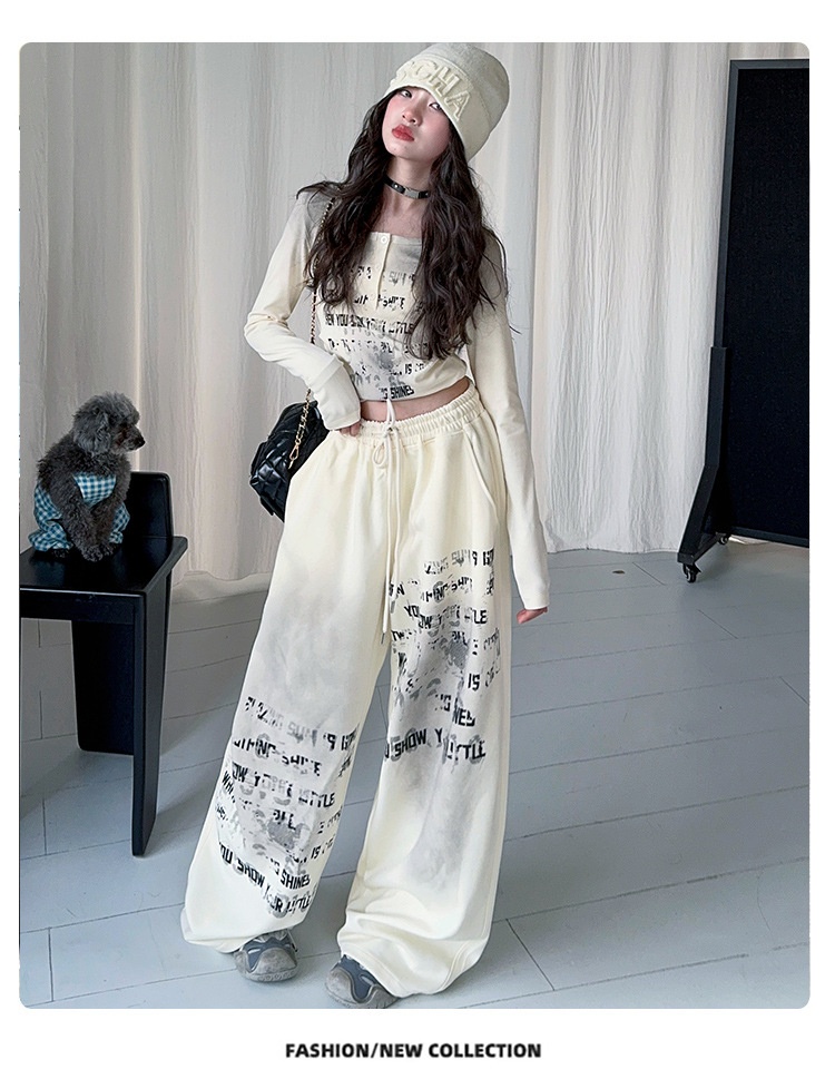 Product information: Pattern: Letters Pants length: trousers Gift Box content: Clothing Fabric name: cotton blend Closed style: zipper shirt Main fabric composition: acetate fiber Sleeve length: Long Style: Korean style