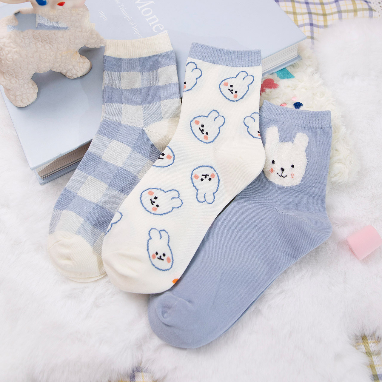 Color: mint blue bunny, taro purple bunny, cream cat
