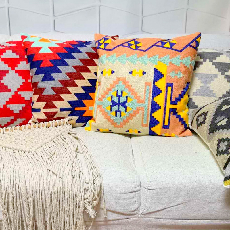 Geometric embroidered pillowcase