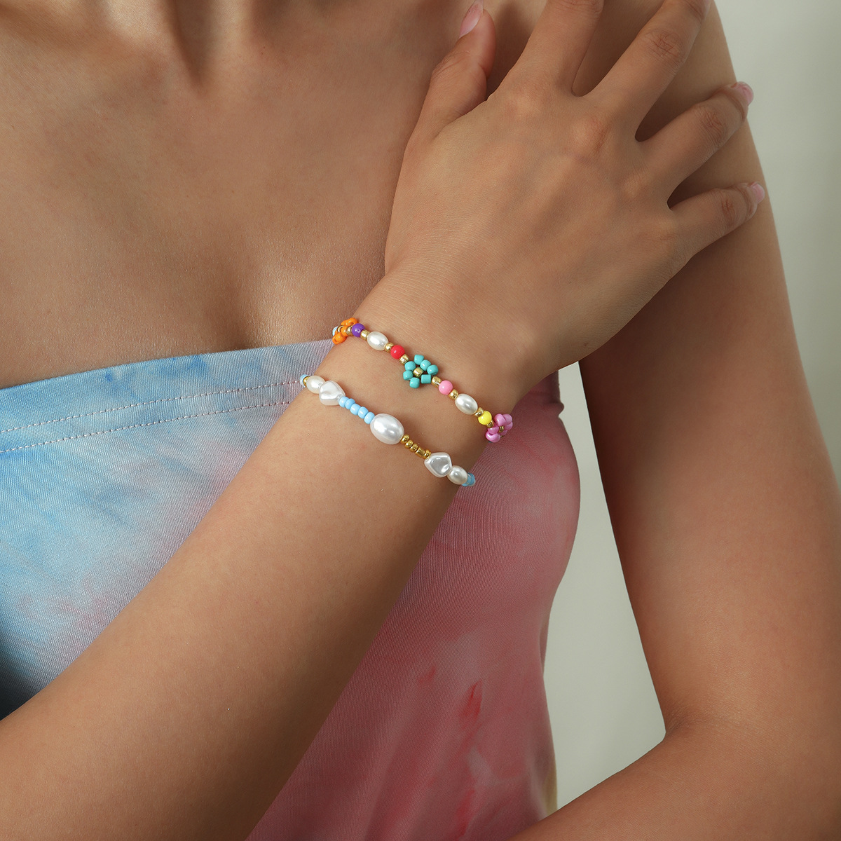 Style: Bohemian/vacation style/simple/European and AmericanMaterial: rice beads + imitation pearlsProcessing technology: hand knittingType: BraceletStyle: Women'sShape: flowerColor: Color Set 2282